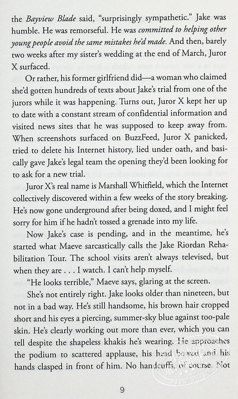凯伦·麦马纳斯(Karen M. McManus),巧妙以第①人称现在式视角切换,让读者透过主要角色的双眼,拼凑事情的真相。深埋的秘密逐渐浮出水面,交织着来自过往的谜团,邀请读者回到湾景高中,享受在层层悬疑转折中,揭露精彩真相的快感。