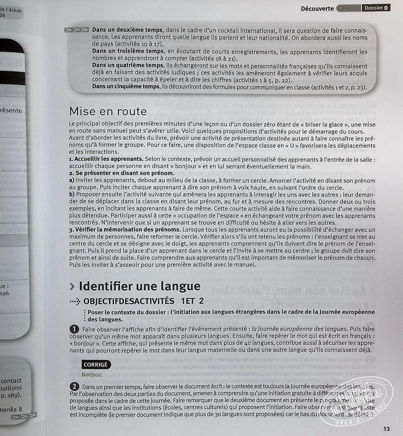> un accompagnement à l'utilisation du livre de l'élève (objectifs détaillés et scénario de chaque leçon, précisions sur la démarche et l'animation de classe, tous les corrigés);