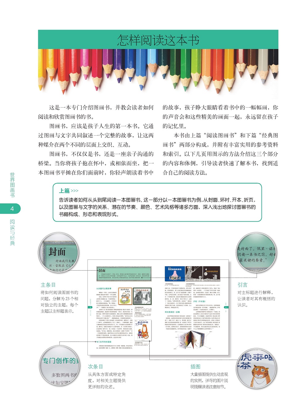 本书是一部教读者如何阅读和欣赏图画书的阅读指南。全书分为上下篇。上篇是对图画书这一图书门类的介绍,下篇选择已经在国内引进出版的60余部世界经典图画书进行了精彩解读,附录不仅包含图画书重要奖项的介绍和权威推荐书目,还为读者的深入阅读和研究提供了主题索引。