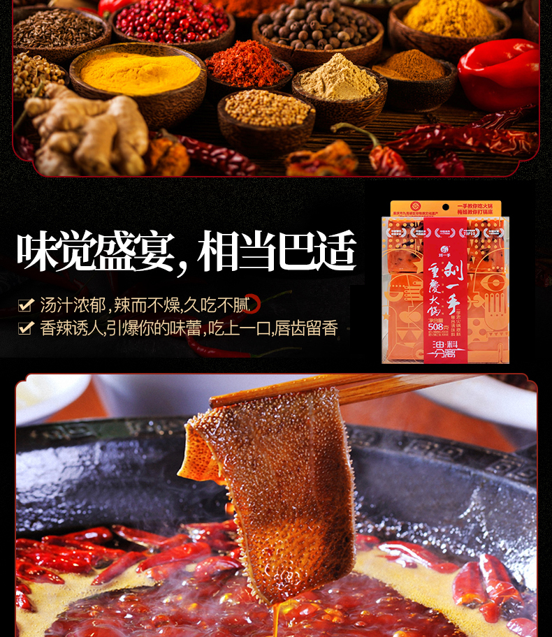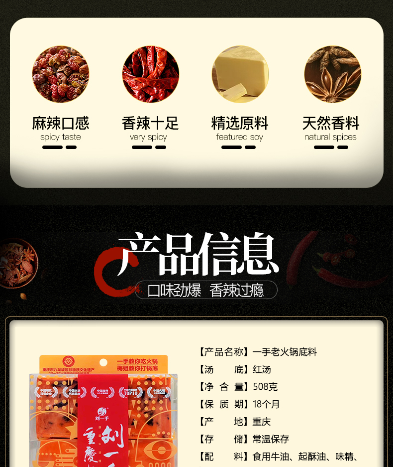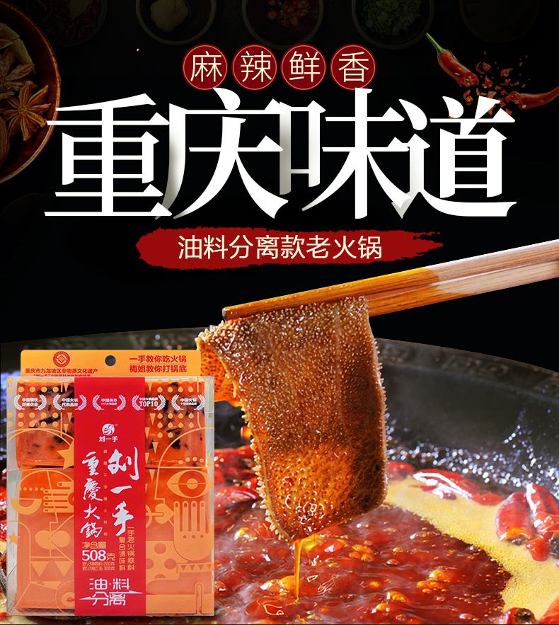 刘一手重庆味道 508g油料分离款牛油麻辣老火锅底料 商品图0