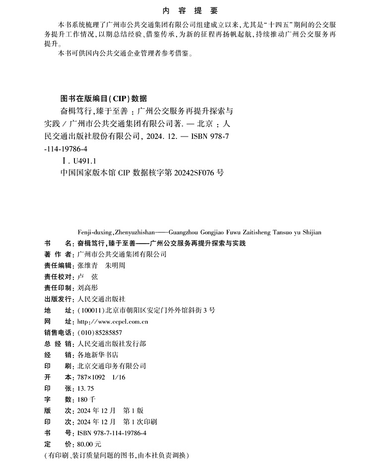 书名:奋楫笃行,臻于至善——广州公交服务再提升探索与实践