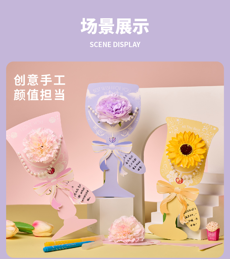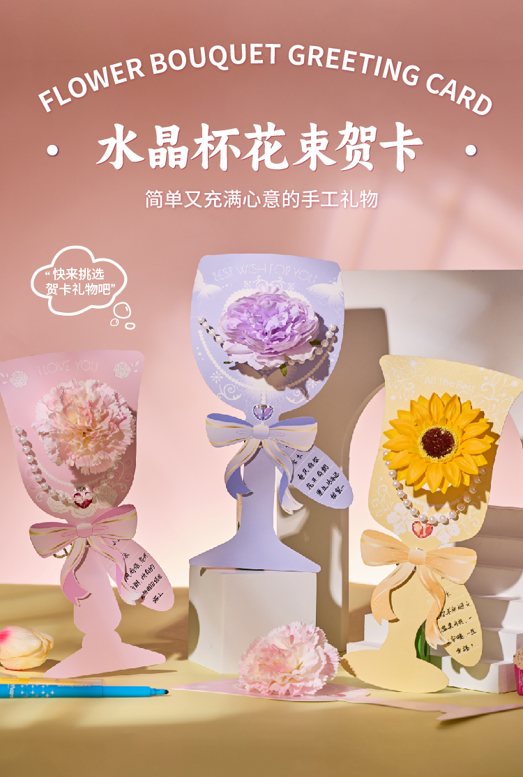 三八38妇女节礼物手工diy水晶杯花束贺卡儿童制作材料幼儿园女神