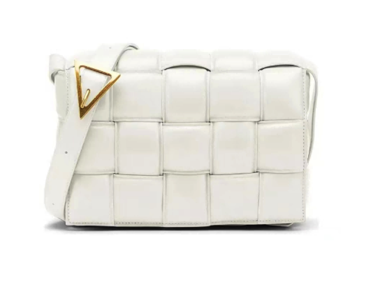 Bottega Veneta 葆蝶家 Padded Cassette系列15格Intreccio编织羊皮革金扣 枕头包单肩斜挎包 女款 白