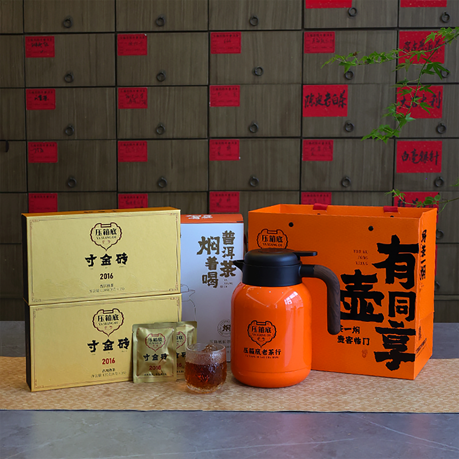 压箱底有壶同享 1.5升焖壶+240克普洱熟茶套装 2016年云南熟普洱茶 送礼