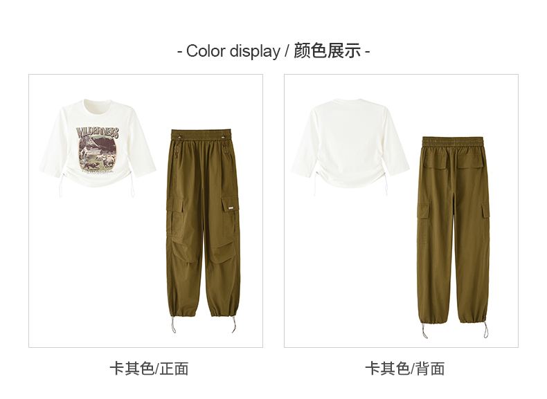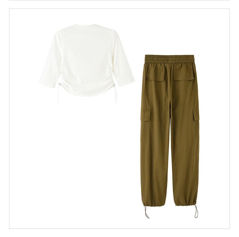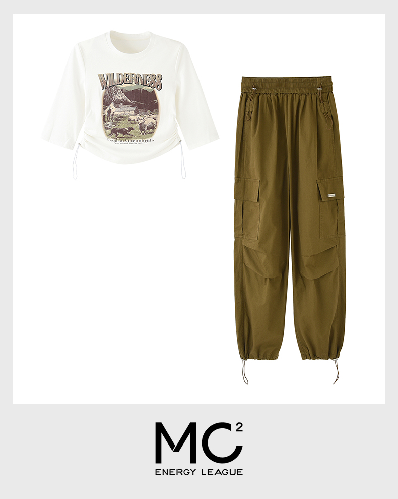 mc2圆领中袖T恤+工装裤两件套女2024春秋新款帅气工装风舒适套装