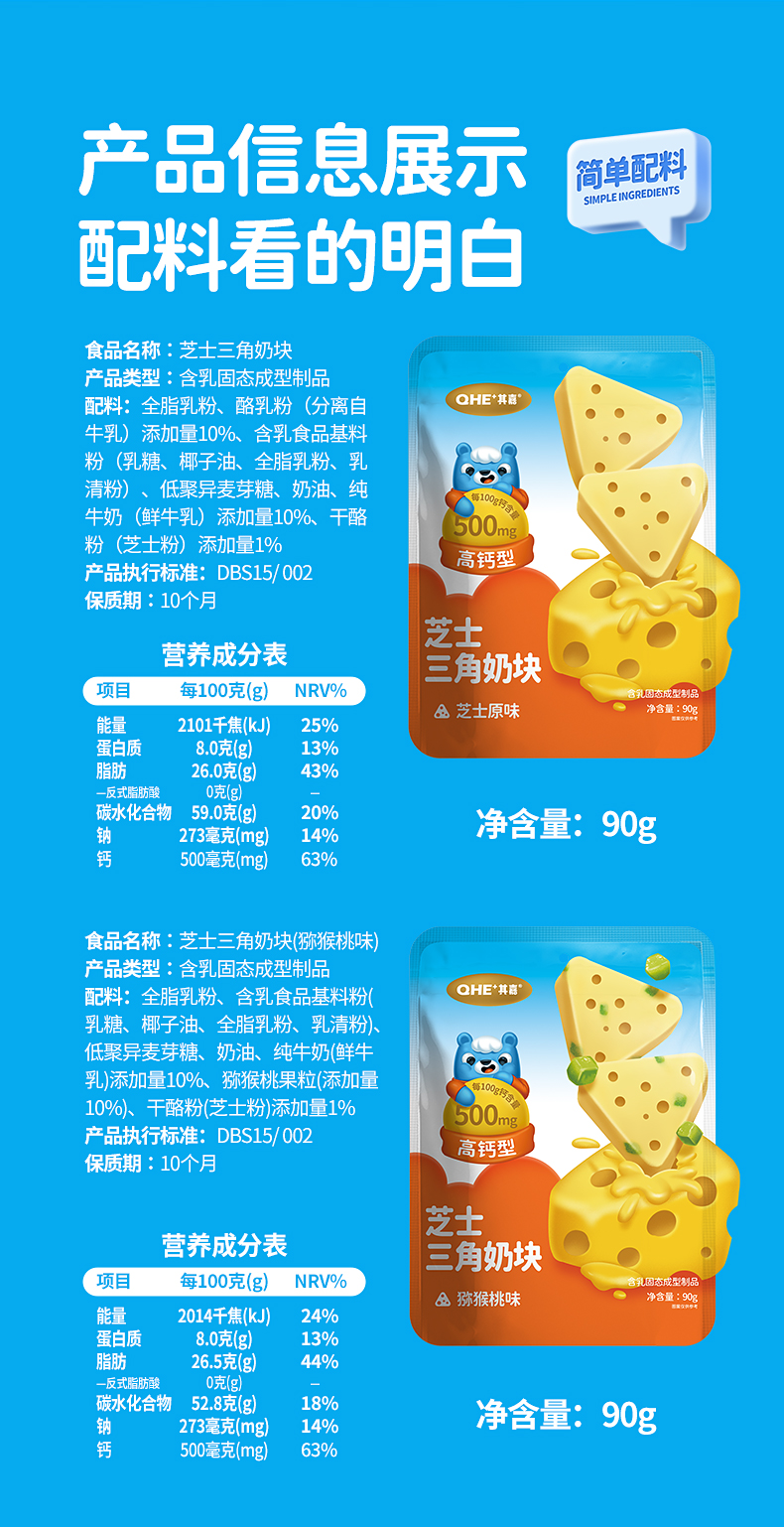 小奶花、QHE其嘉芝士三角 90g