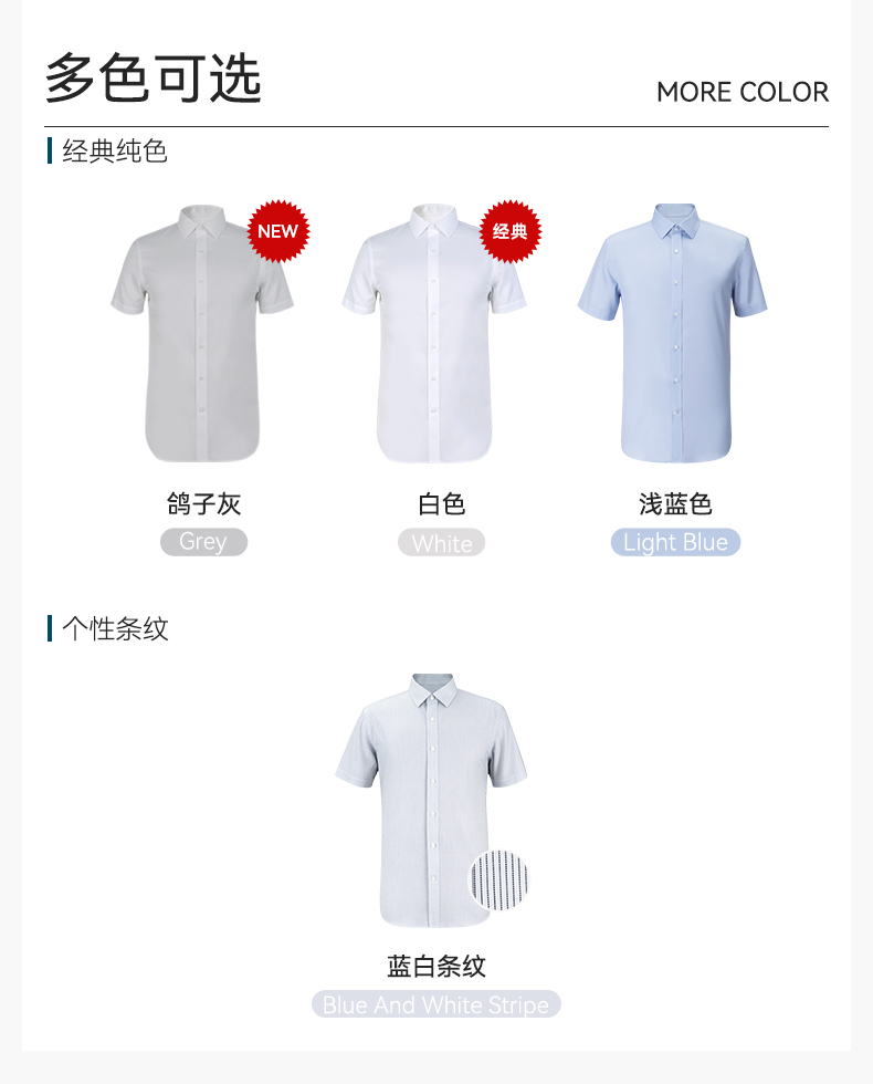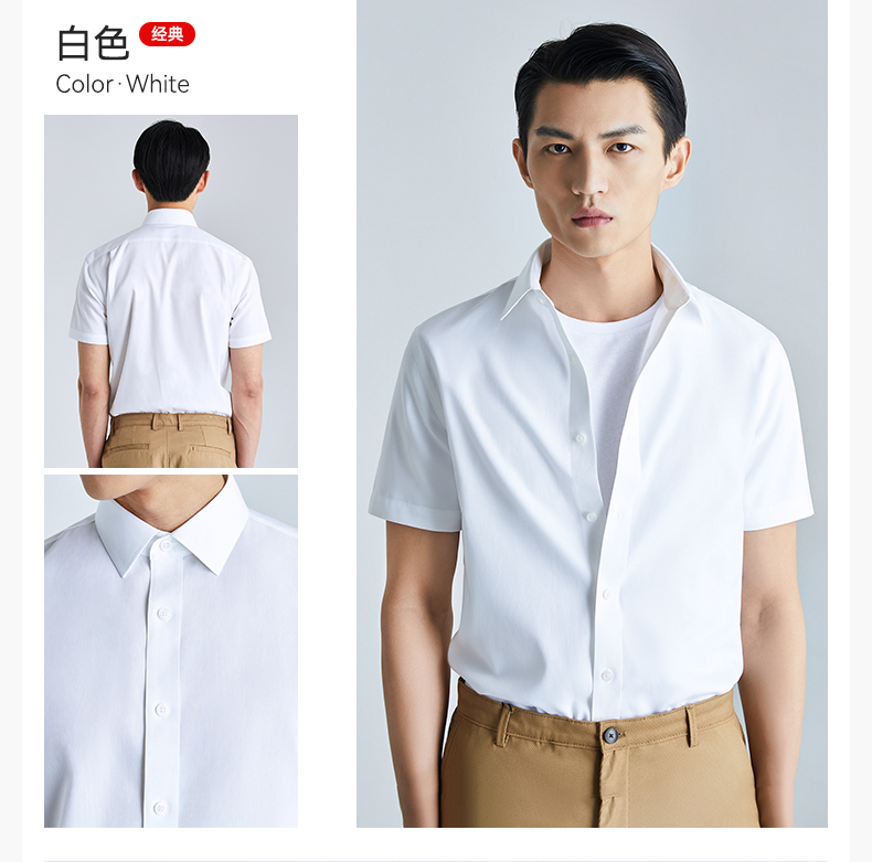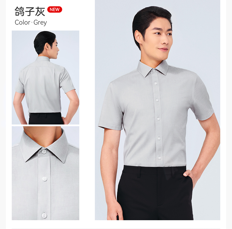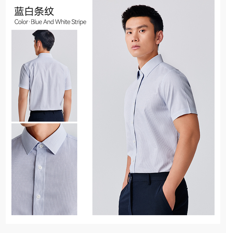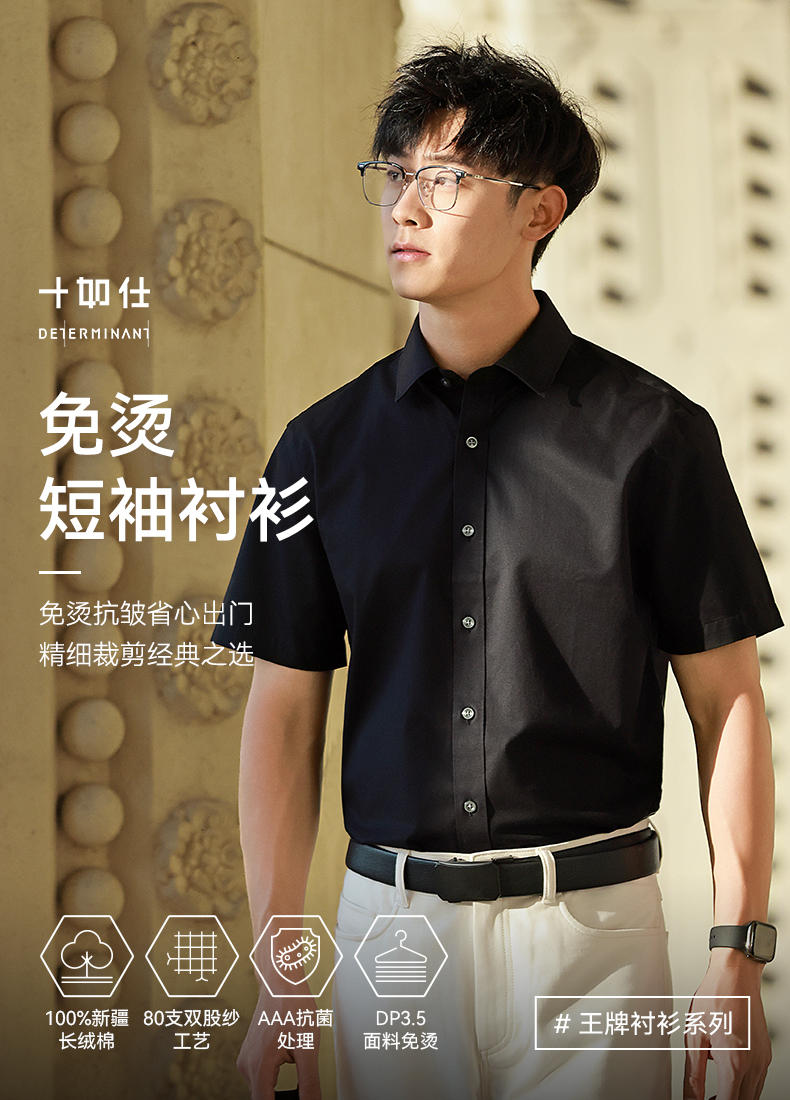十如仕免烫商务休闲100%新疆长绒棉短袖衬衫301
