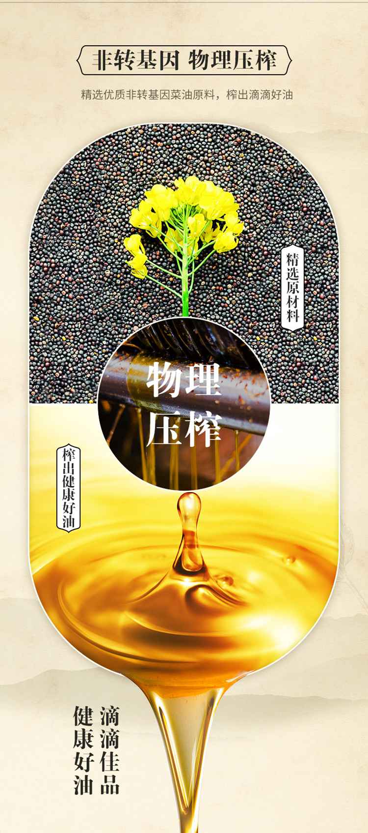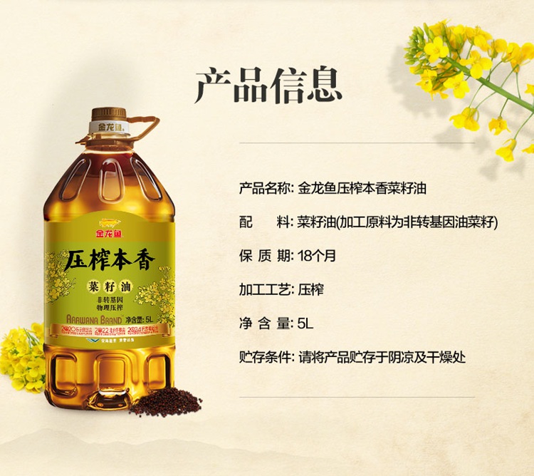 金龙鱼 压榨本香菜籽油 5L(非转)【包邮直发】