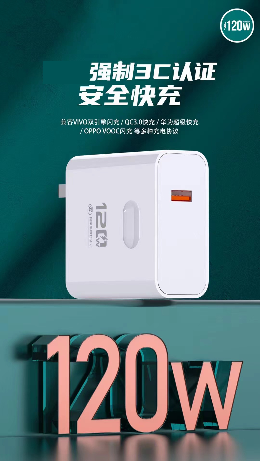 3c认证120w全兼容闪充充电器单头type-c套装