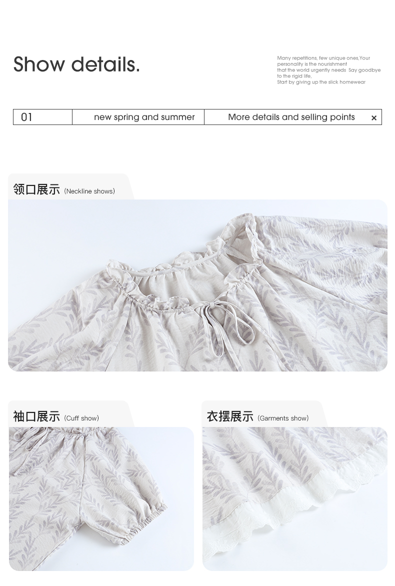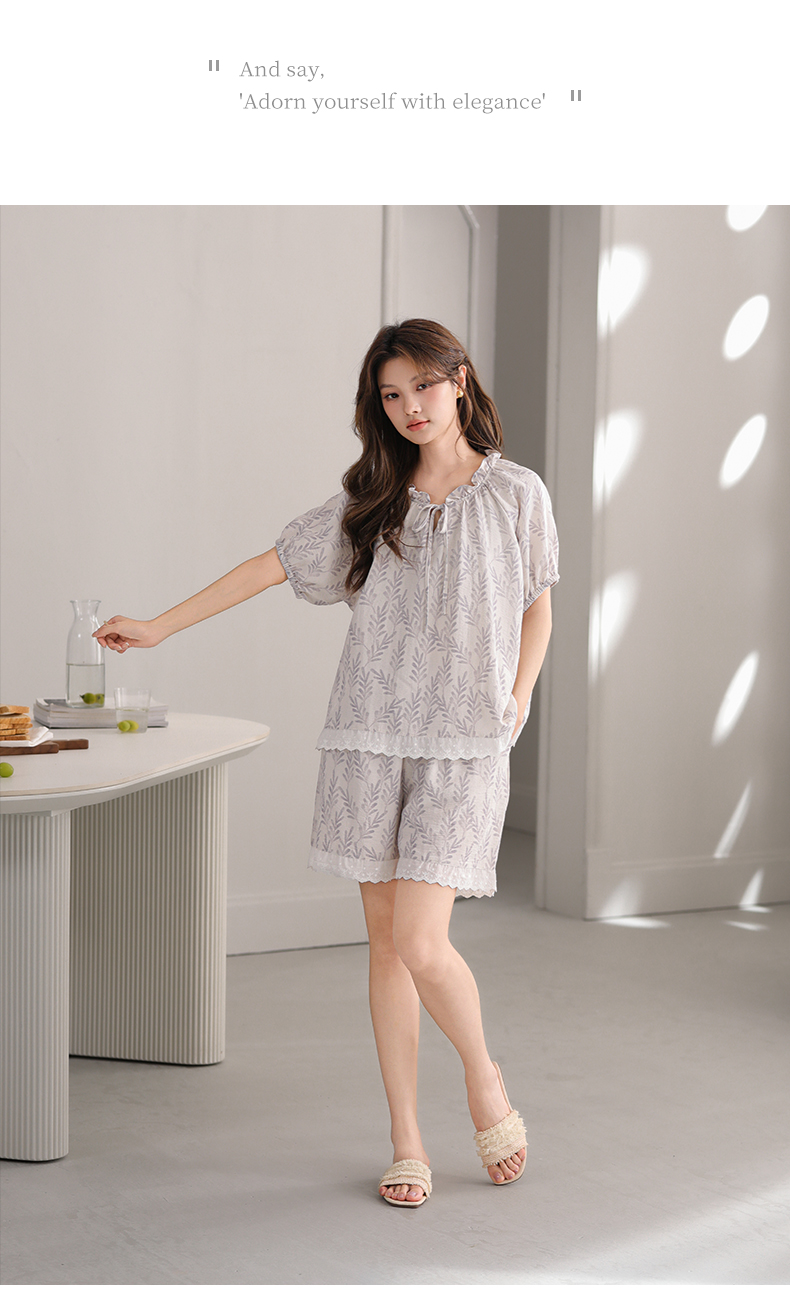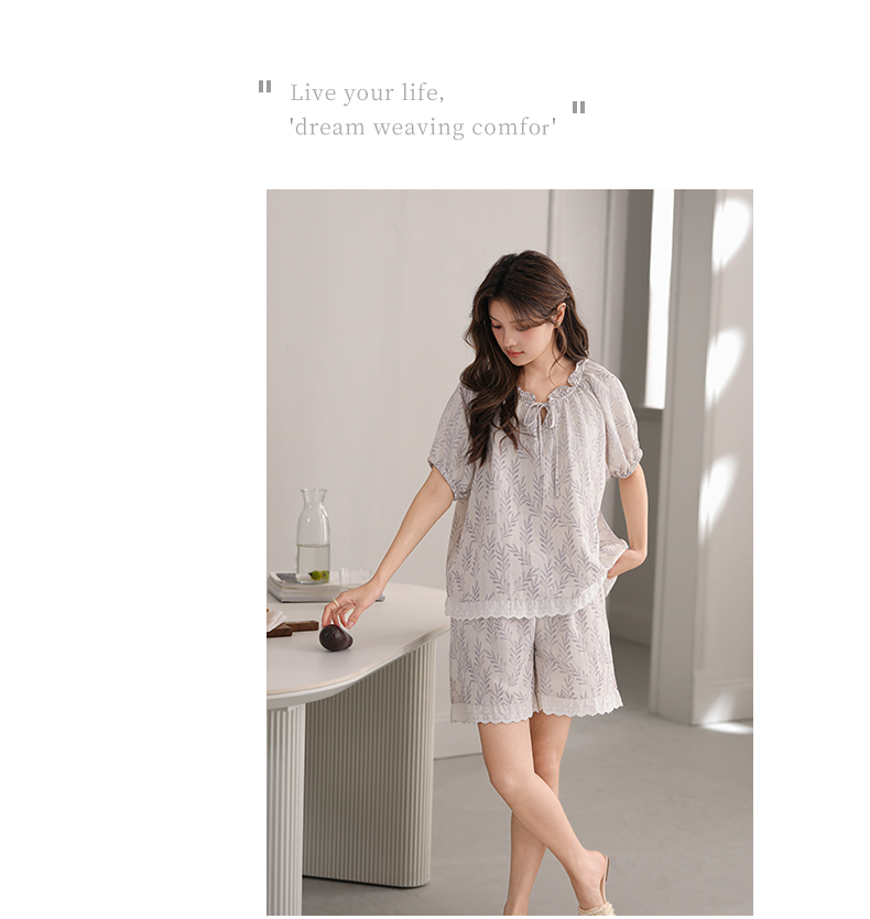 可人儿小众设计师新款泡泡绵夏季女短袖睡衣时尚可外出家居服套装