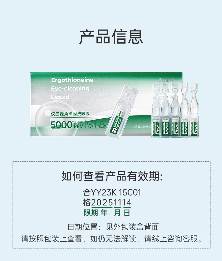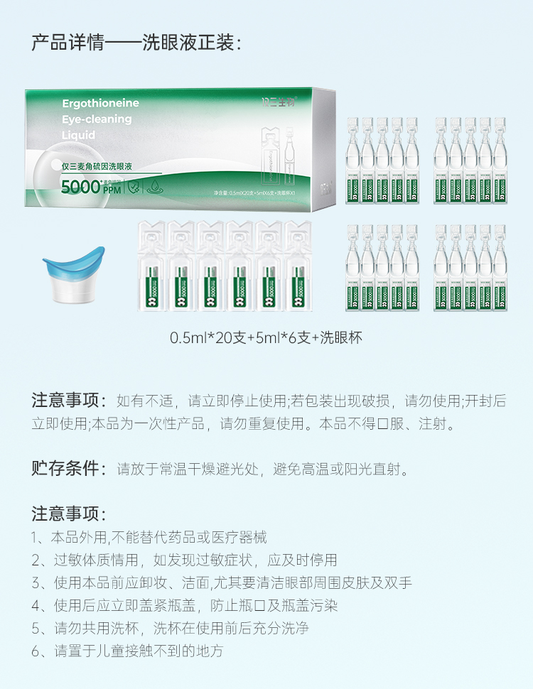 【达播专属】仅三麦角硫因次抛洗眼液便携装0.5ml*20支+5ml*6支+洗眼杯