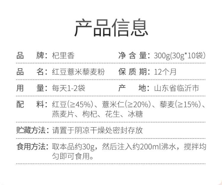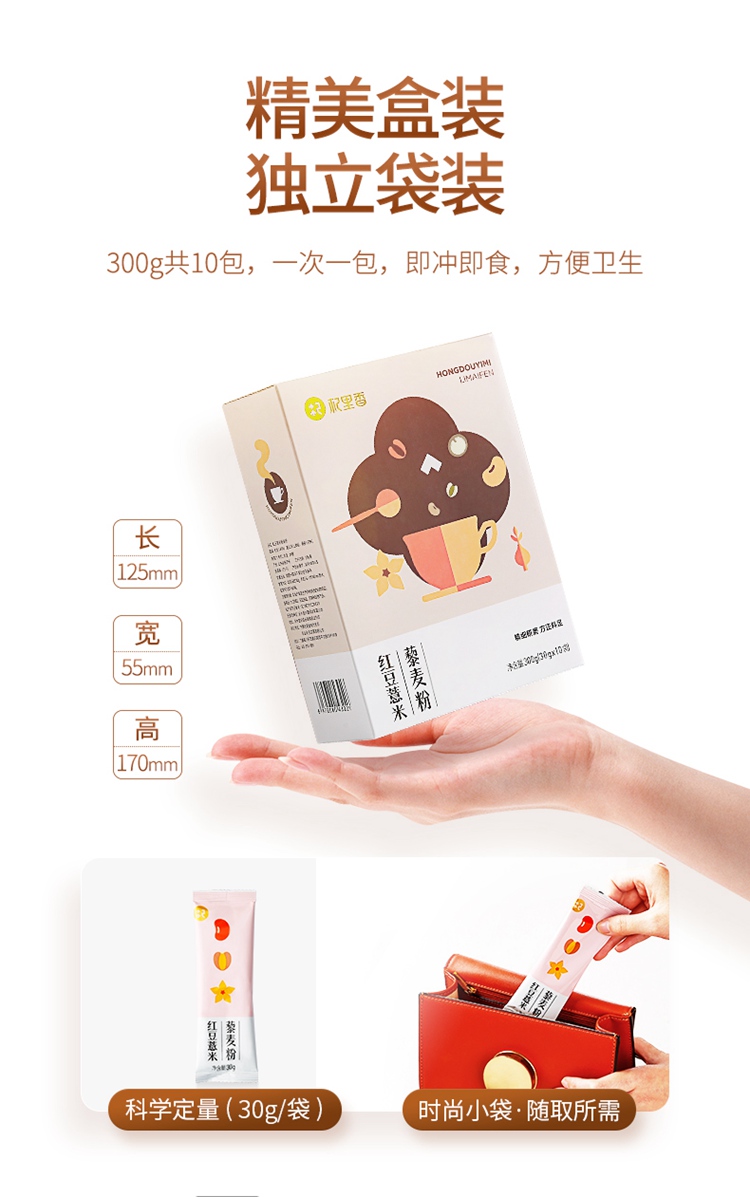 【杞里香】薏仁红豆粉藜麦早餐营养代餐粉300g(30g*10袋)*2盒 共600g(包邮直发)