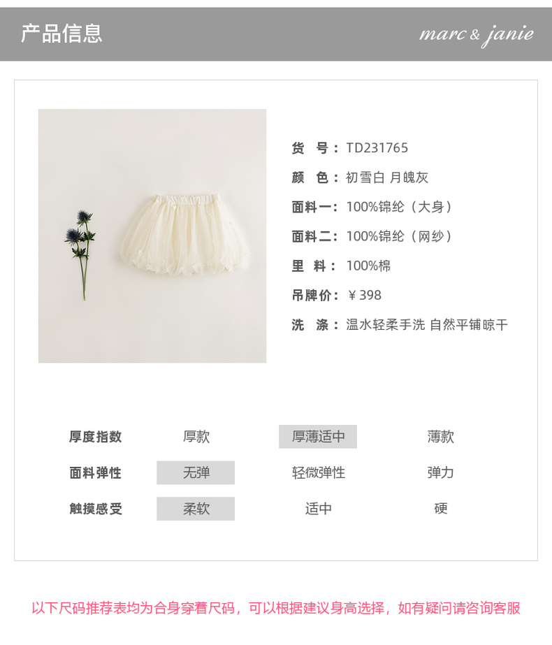 【马克珍妮 芦芙】秋装 女童立体刺绣网纱花苞半身裙短裙 231765