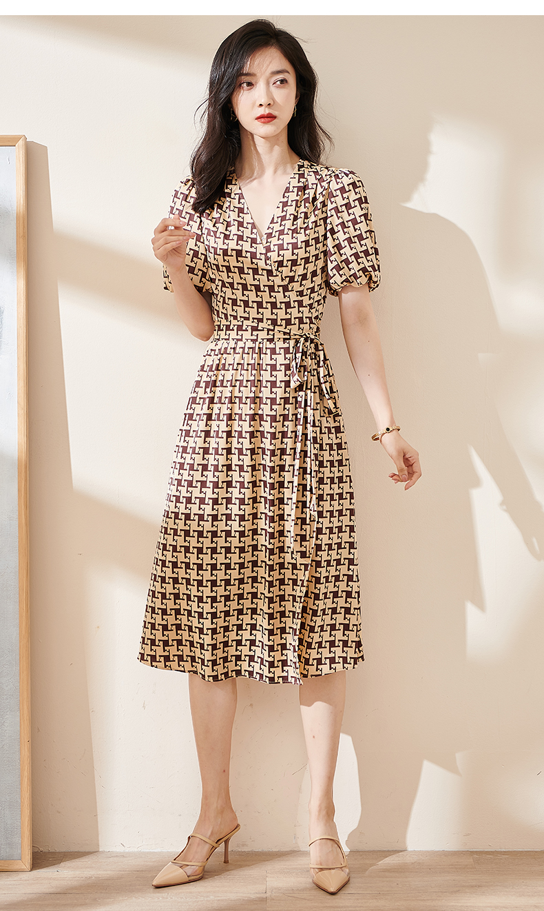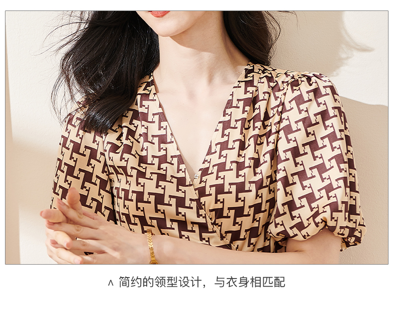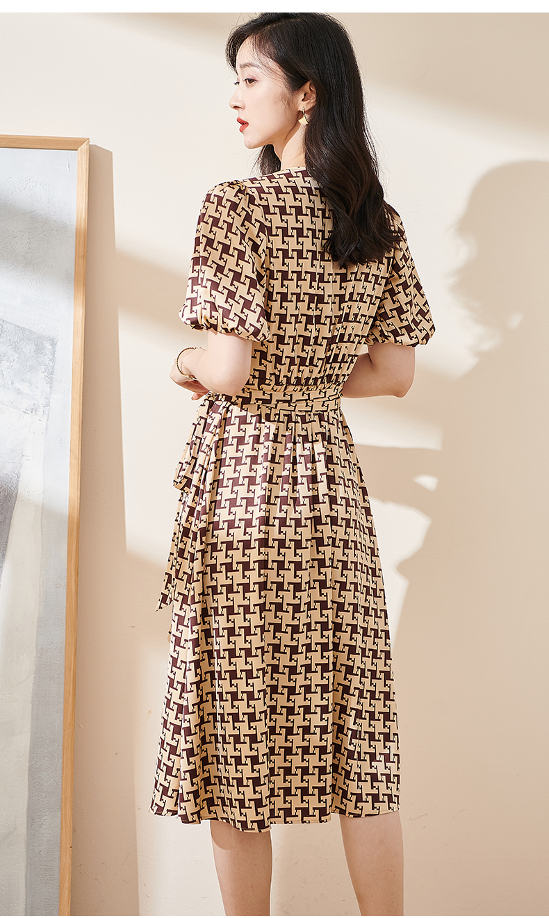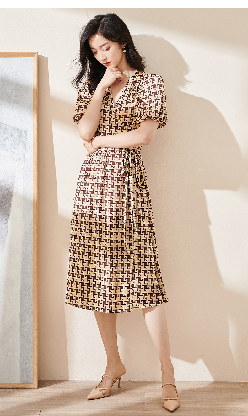 剩S/M/L/XL 米思阳2025夏季新款时尚气质印花连衣裙薄款灯笼袖V领中长裙1217