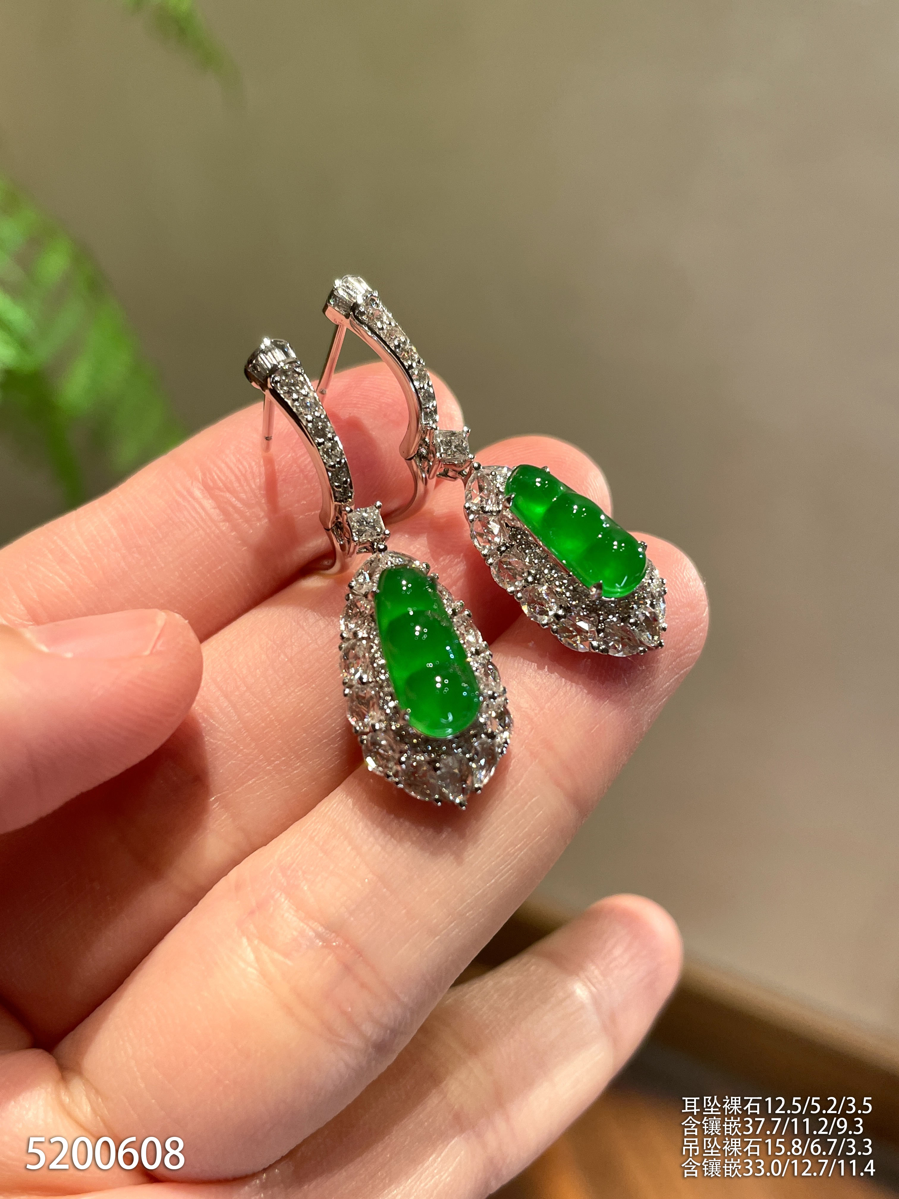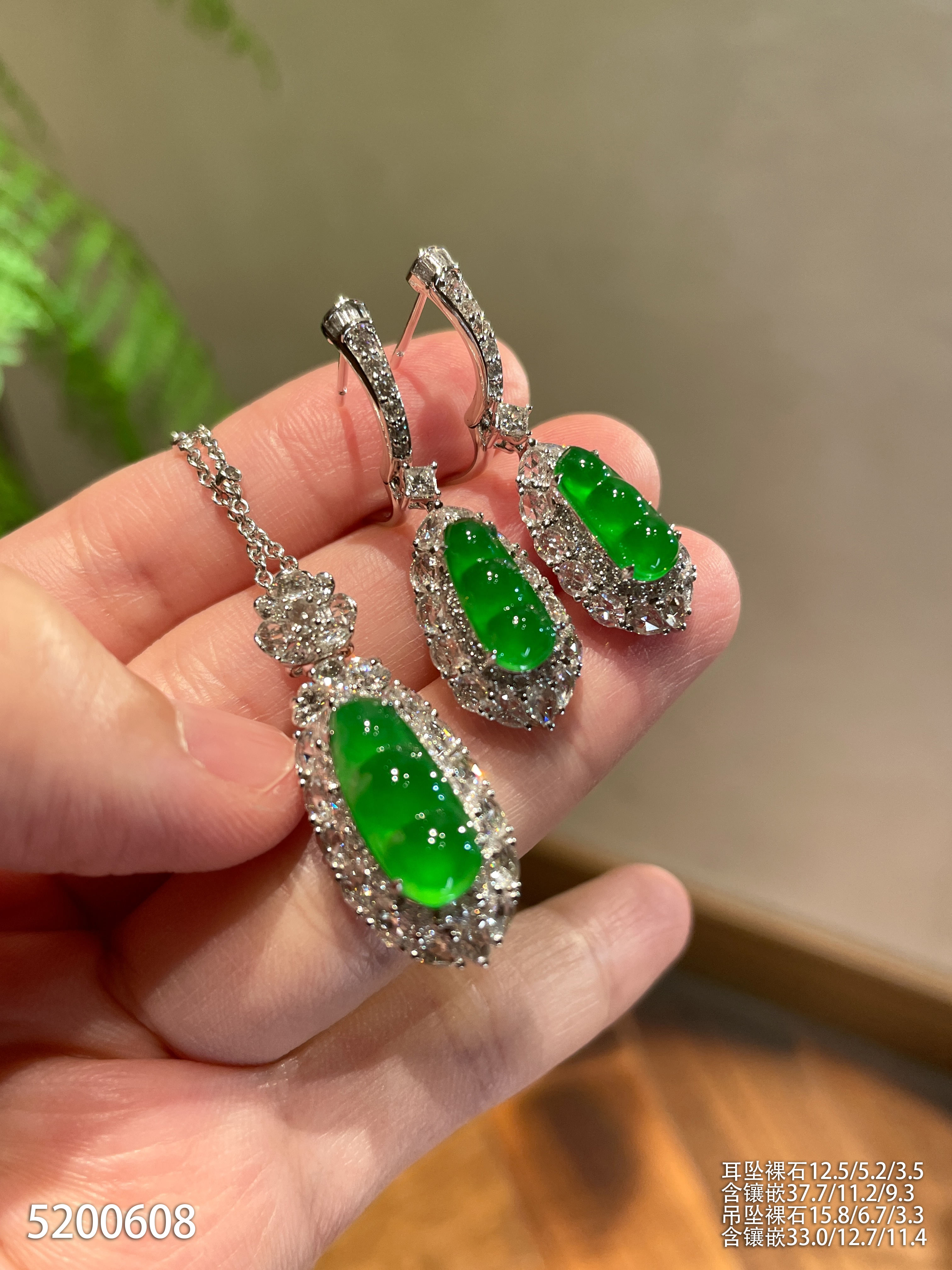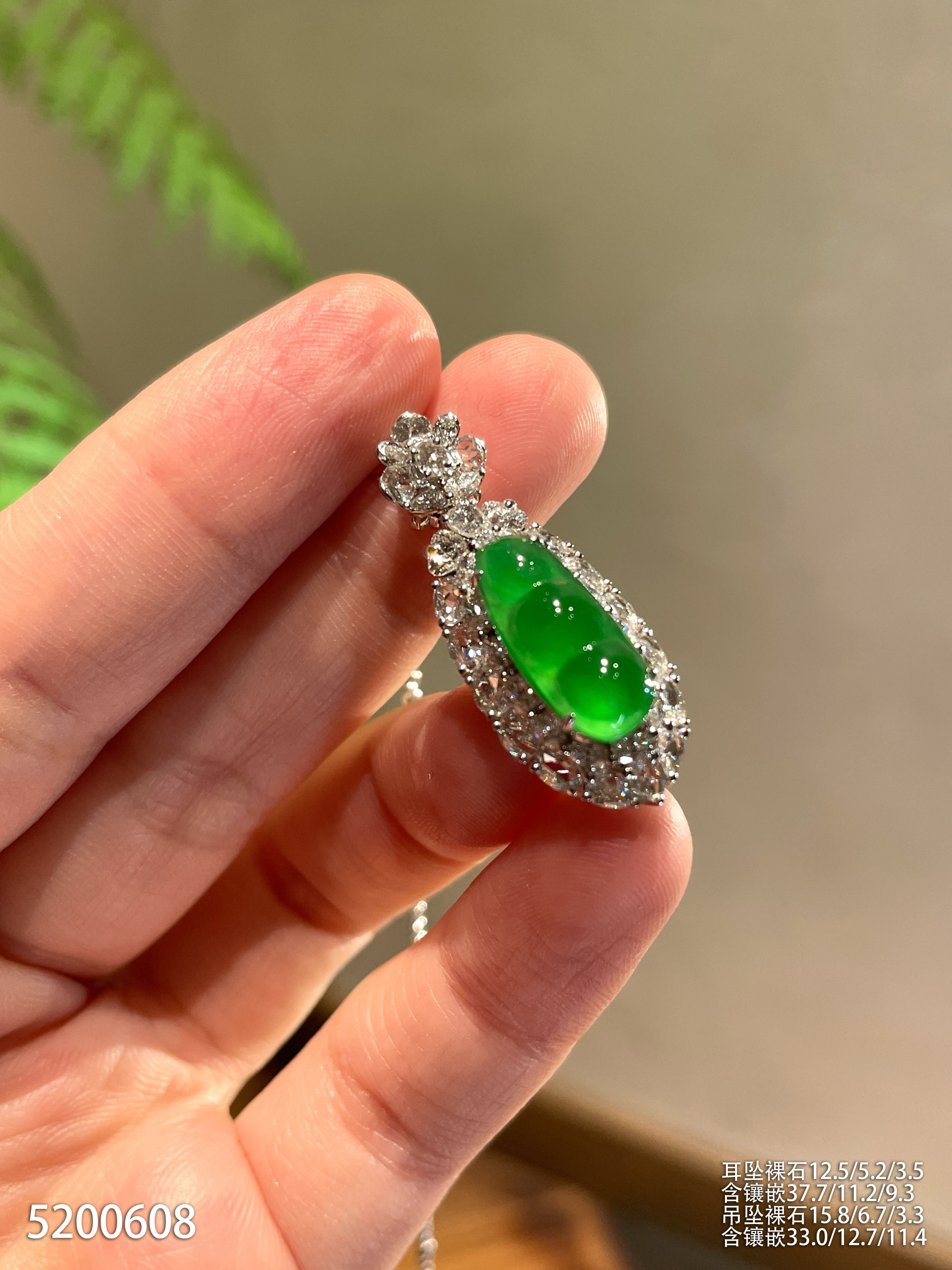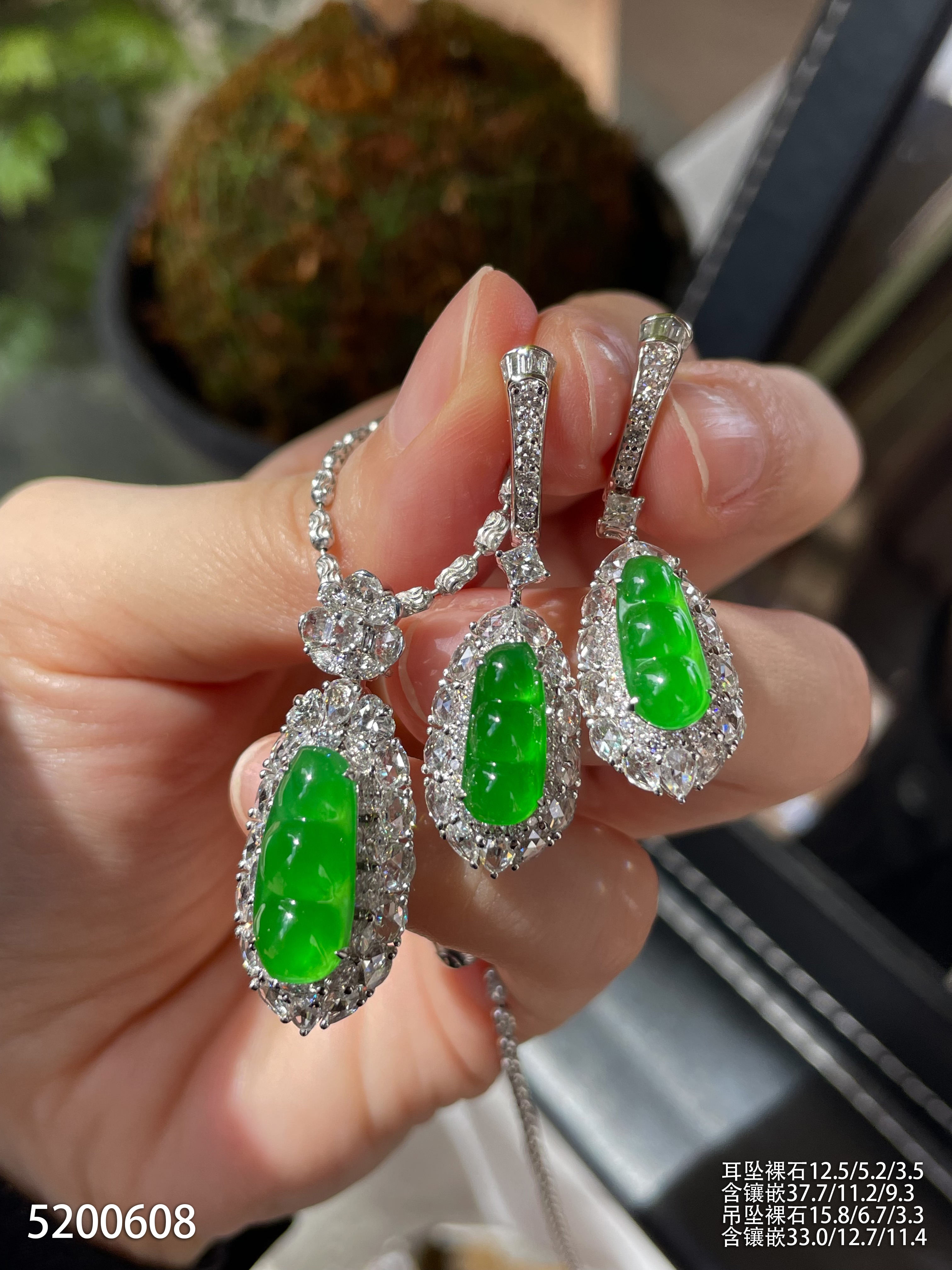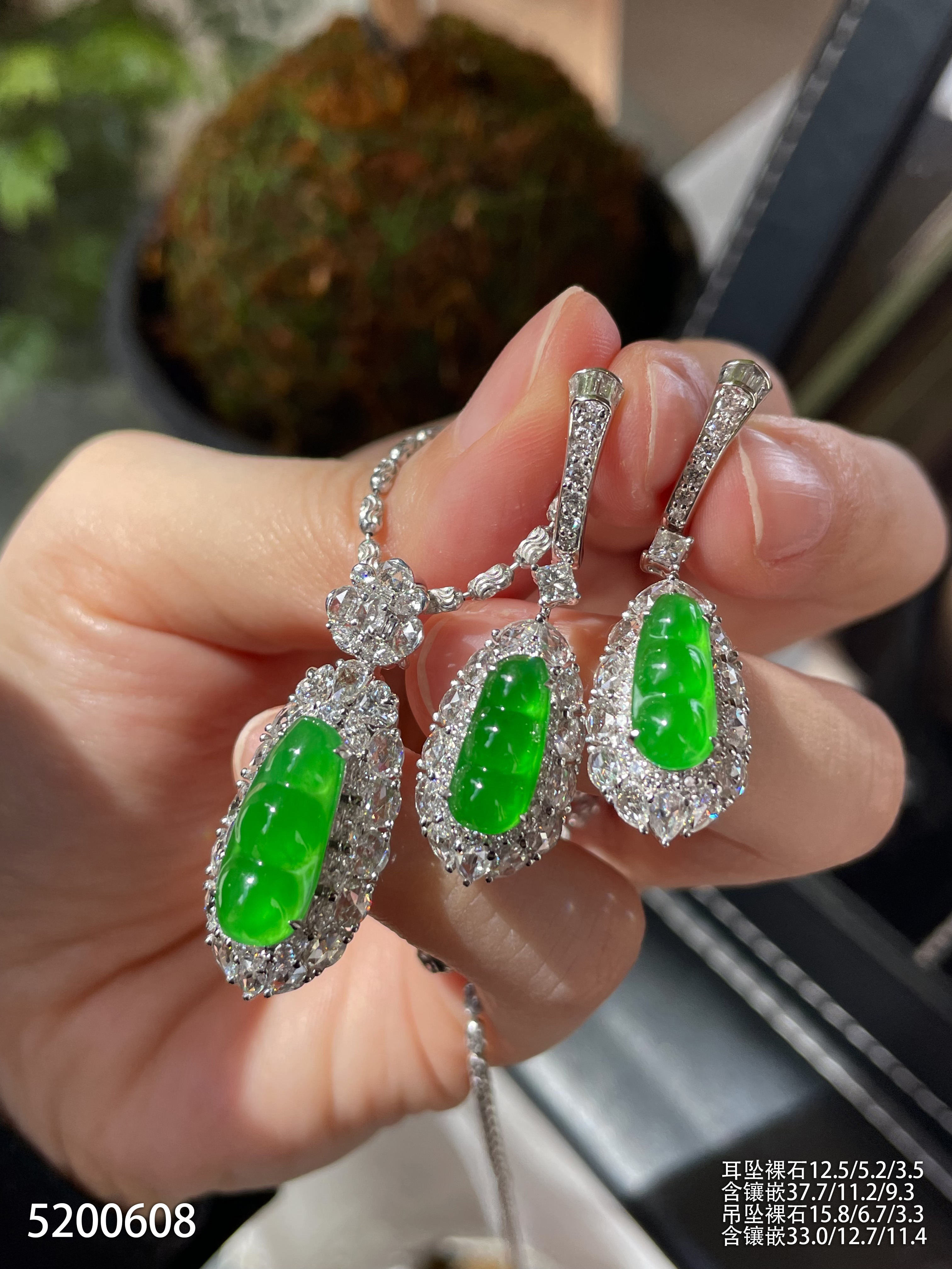 玻璃种艳绿福豆套装【5200608】具体价格微信咨询