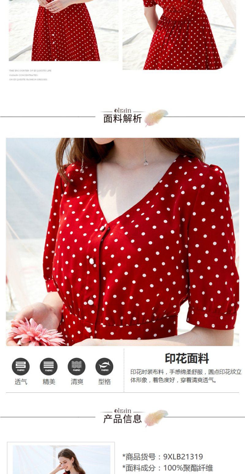 欧芮儿新款女装夏装红白波点雪纺连衣裙女中长款单排扣女裙
