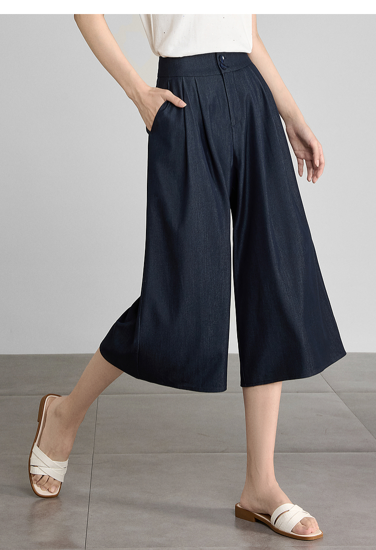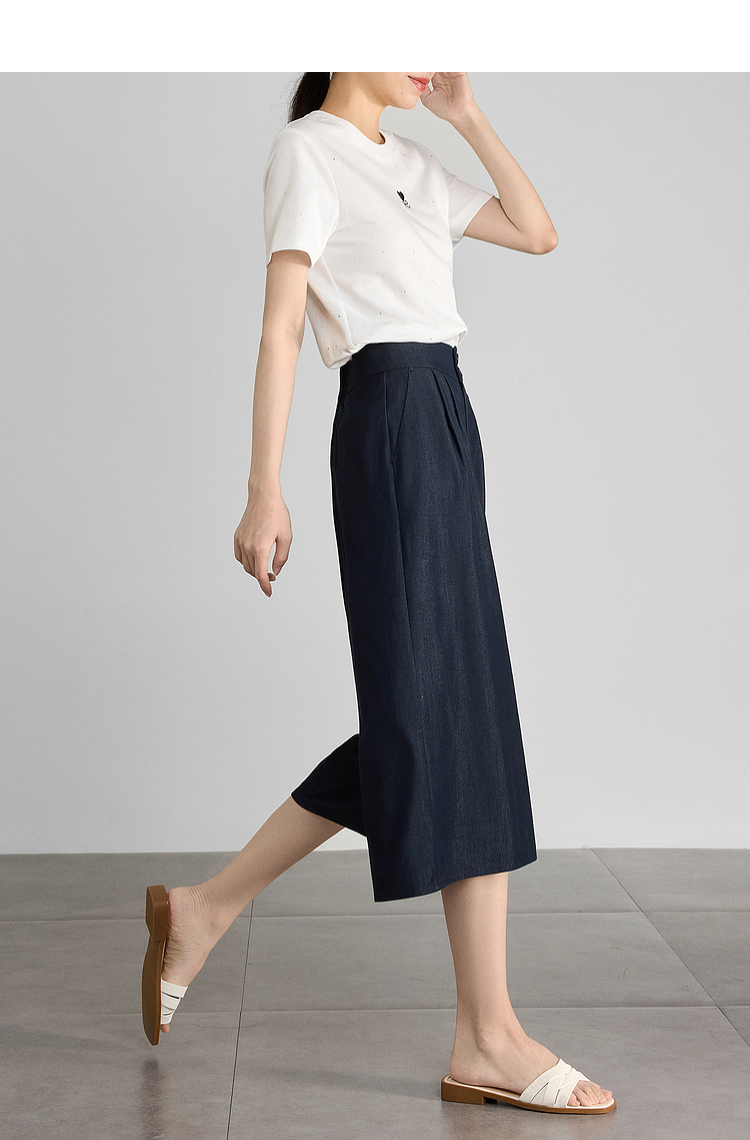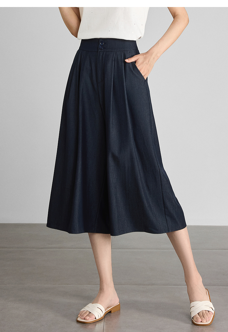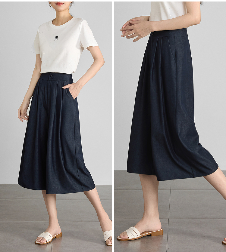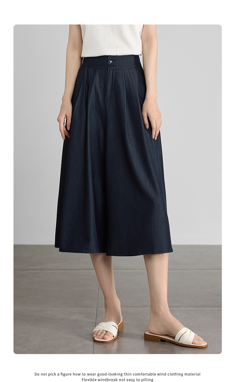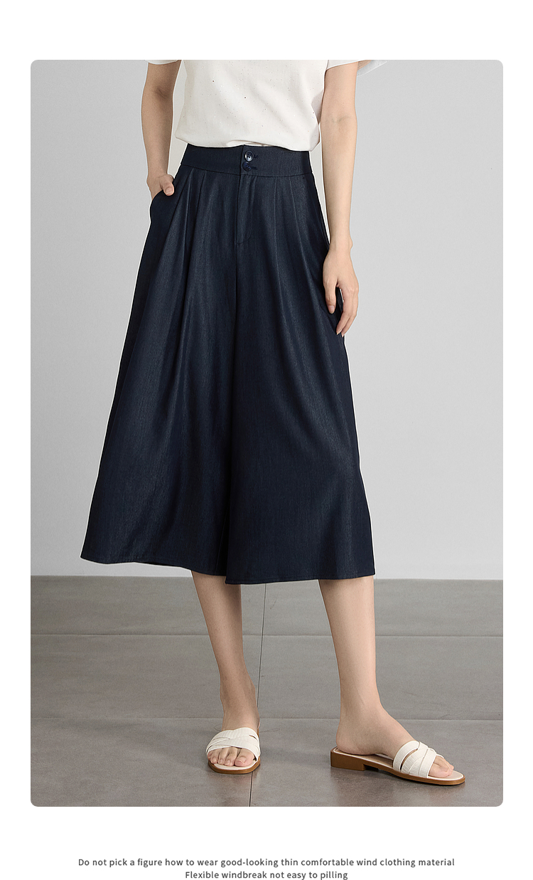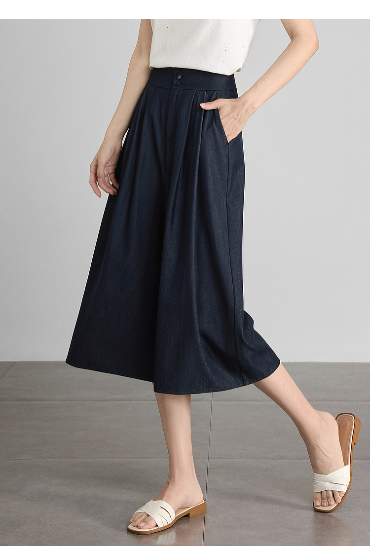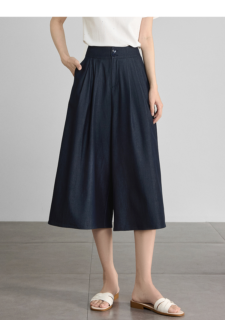 【五折购】熙世界牛仔蓝八分裙裤女2025夏新款休闲垂感宽松裤子阔腿山本裤