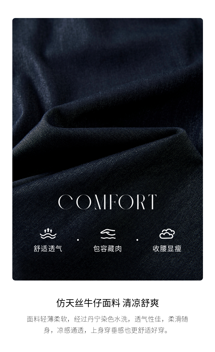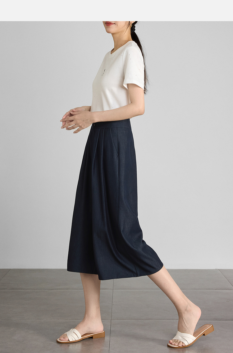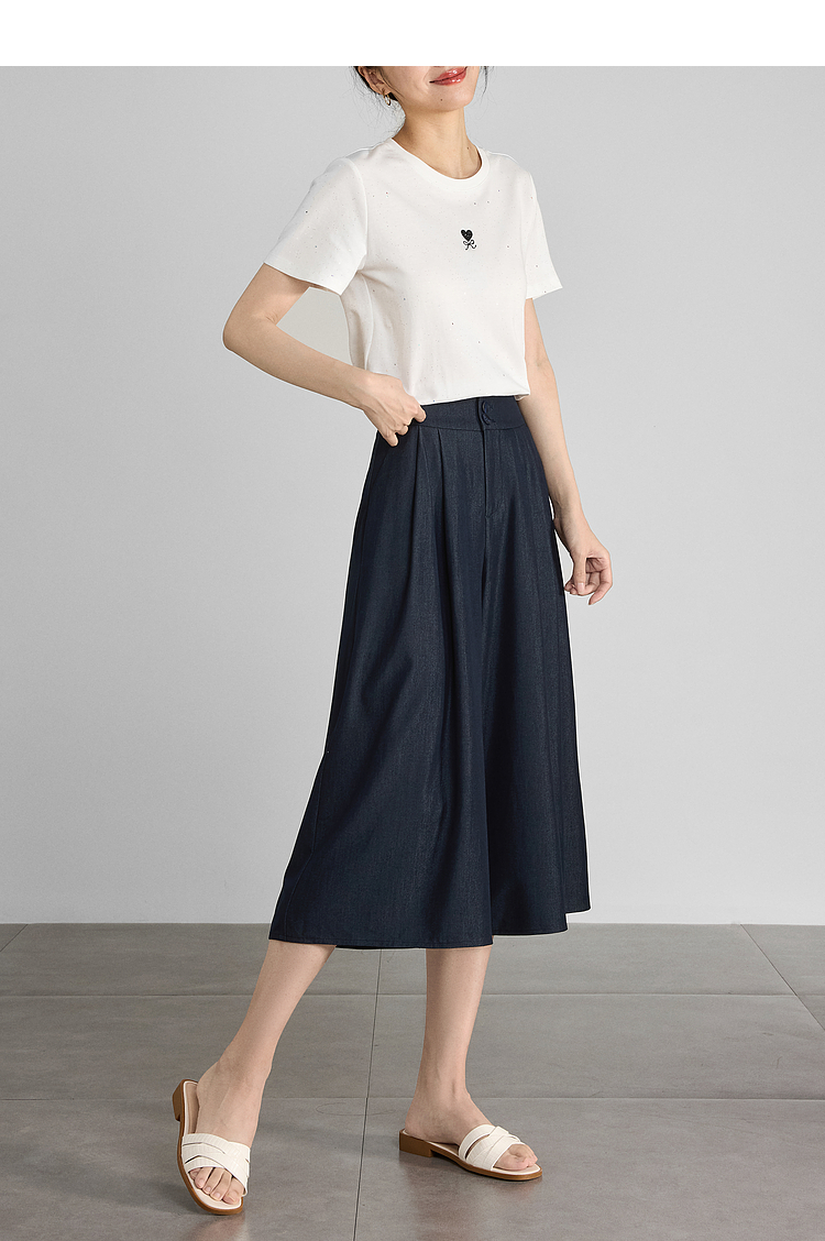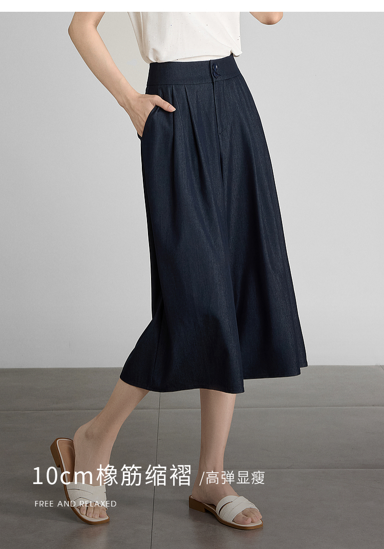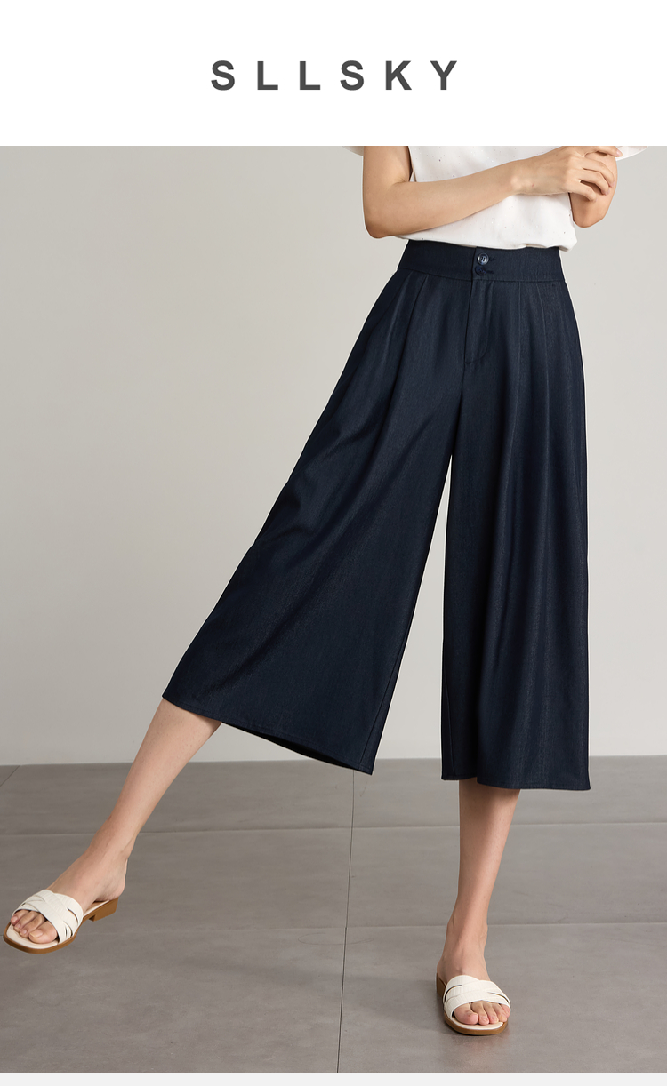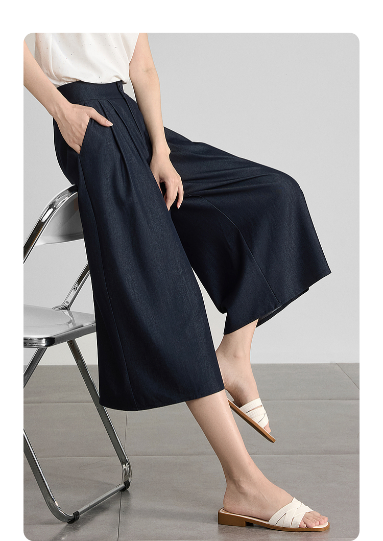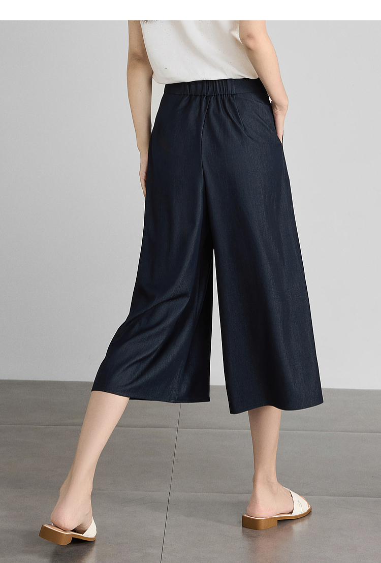 【五折购】熙世界牛仔蓝八分裙裤女2025夏新款休闲垂感宽松裤子阔腿山本裤