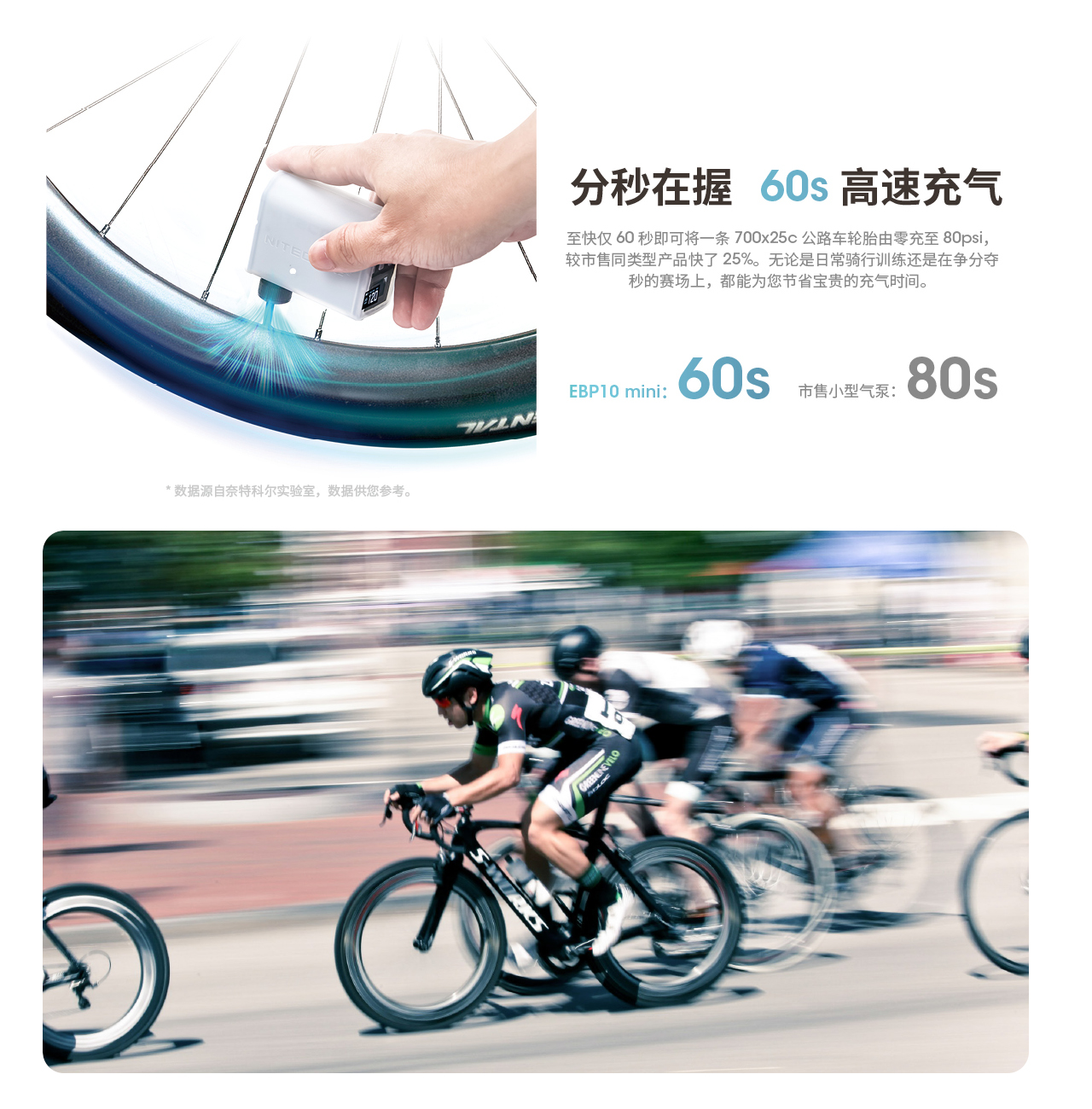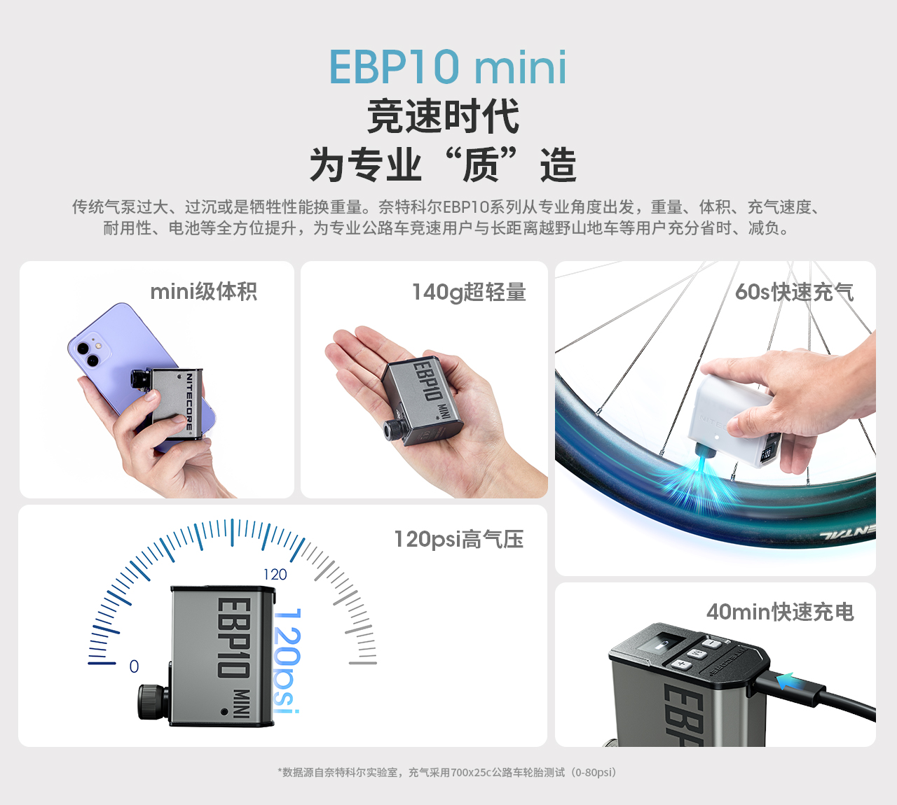 NITECORE奈特科尔EBP10 mini便携式电动气泵 自行车山地车骑行户外露营