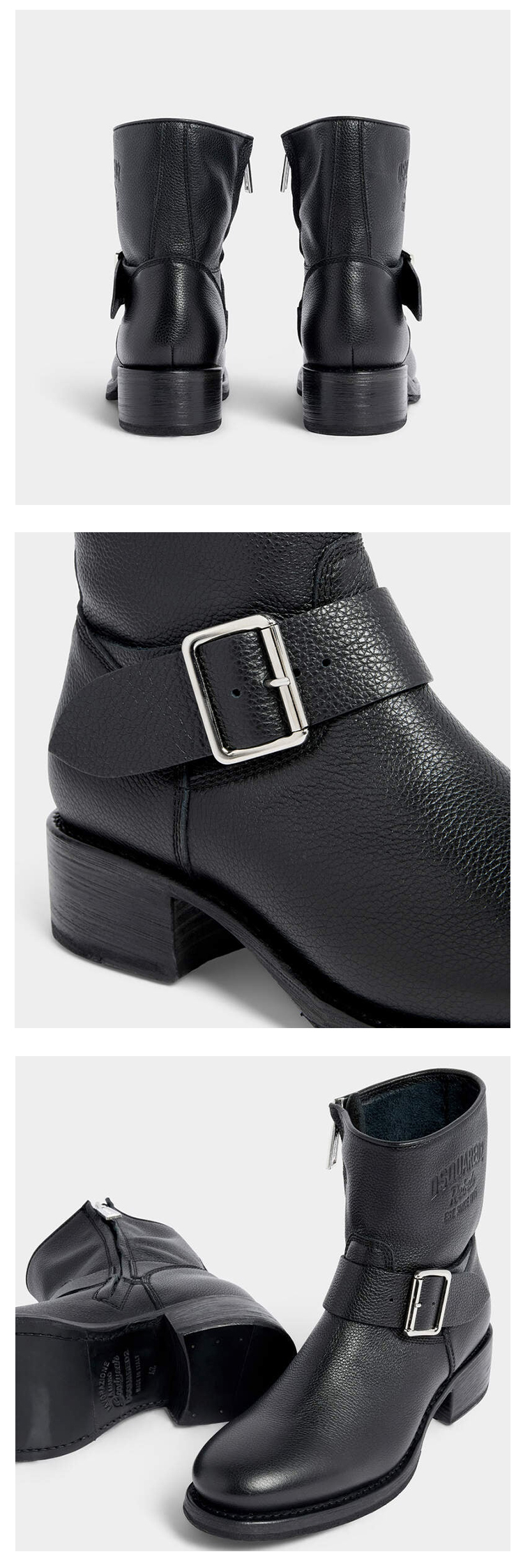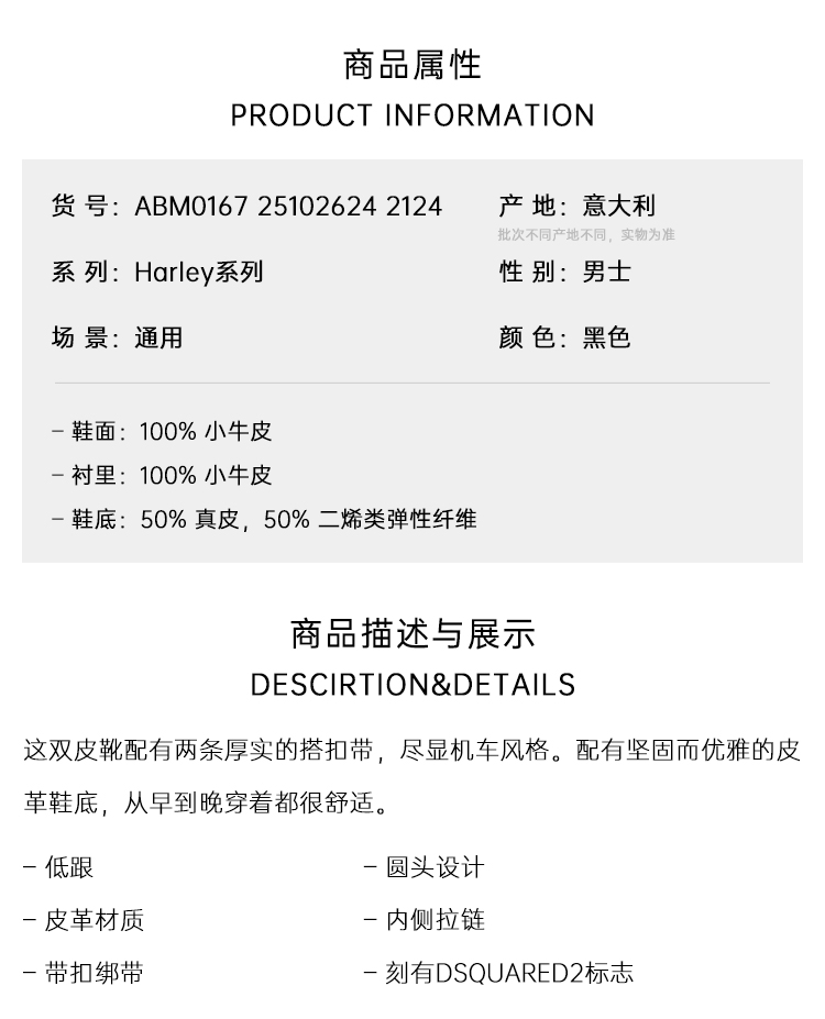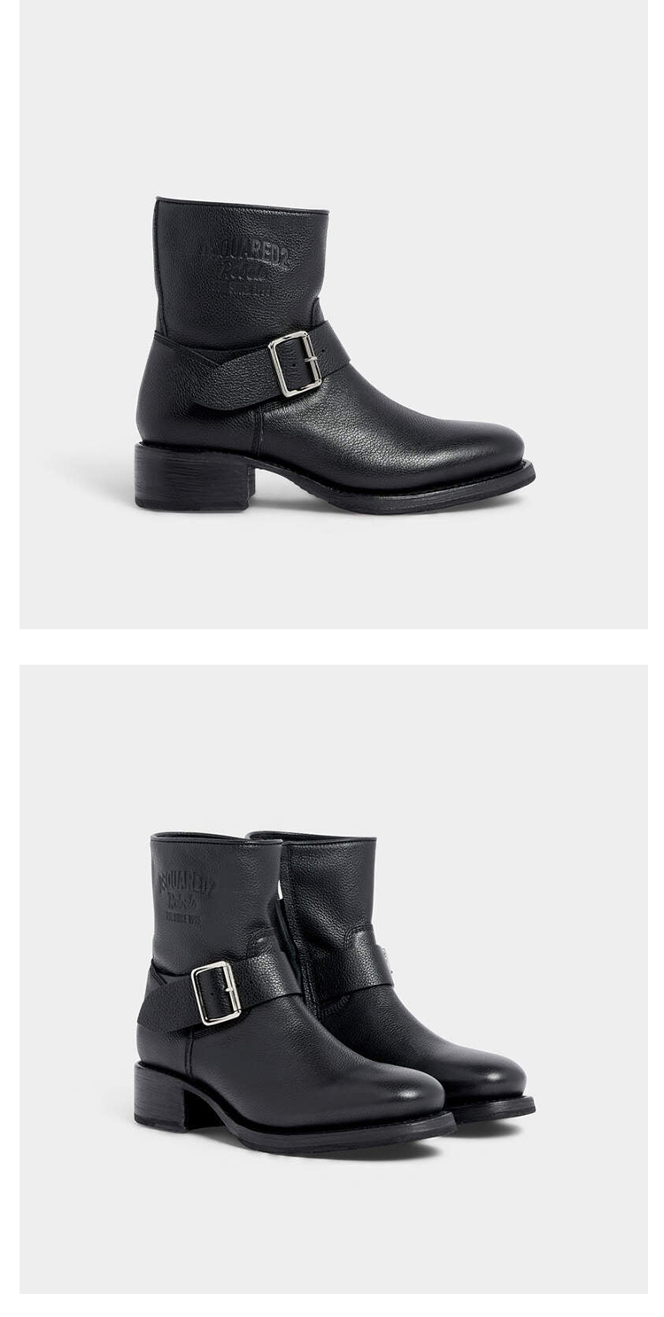 DSQUARED2 男士带扣式绑带皮革Harley中靴 黑色 ABM0167 25102624 2124
