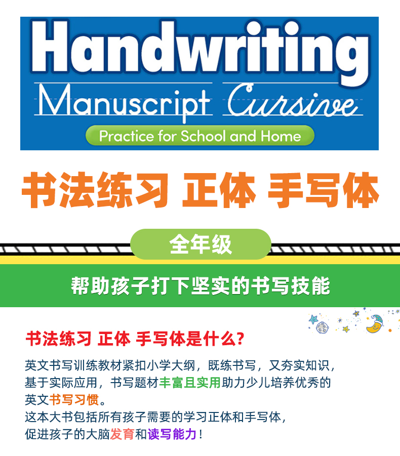 Evan-Moor Hand writing Manuscript Cursive Grade All 书法练习 正体 手写体 全年级