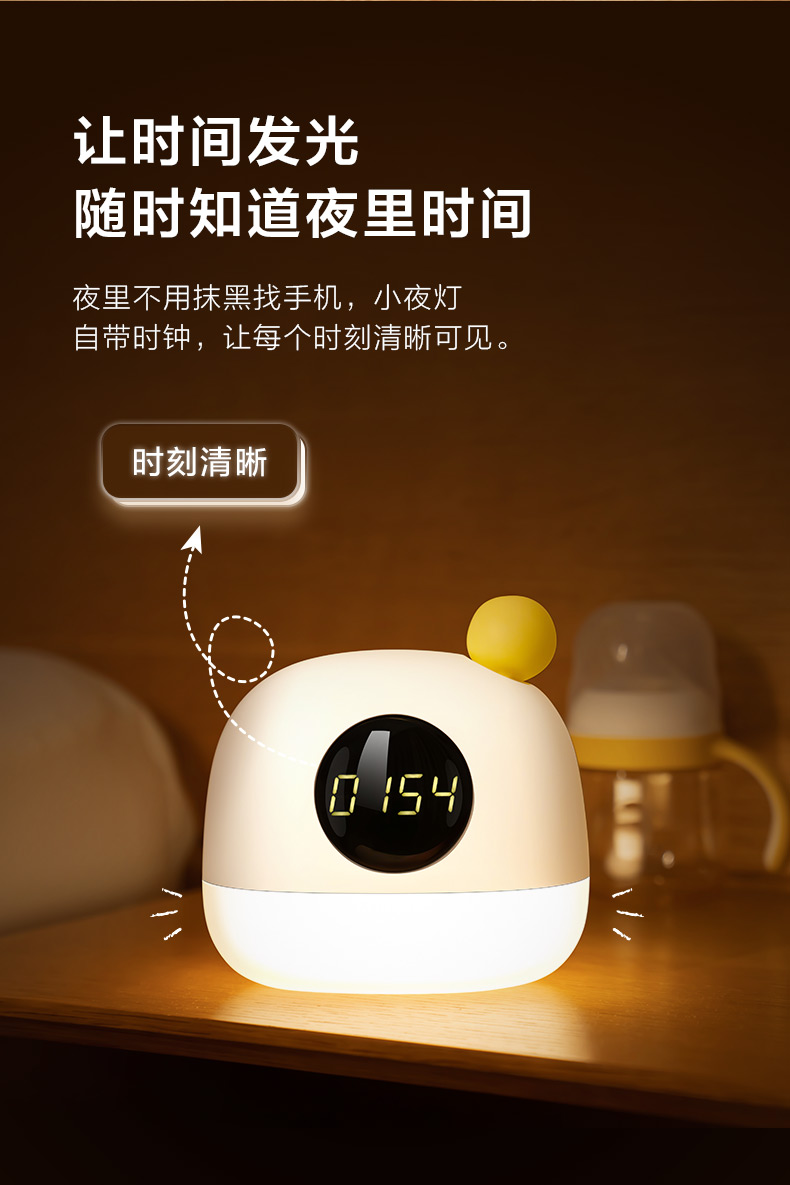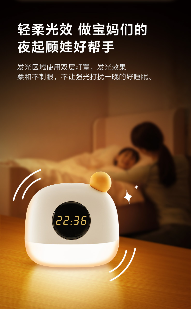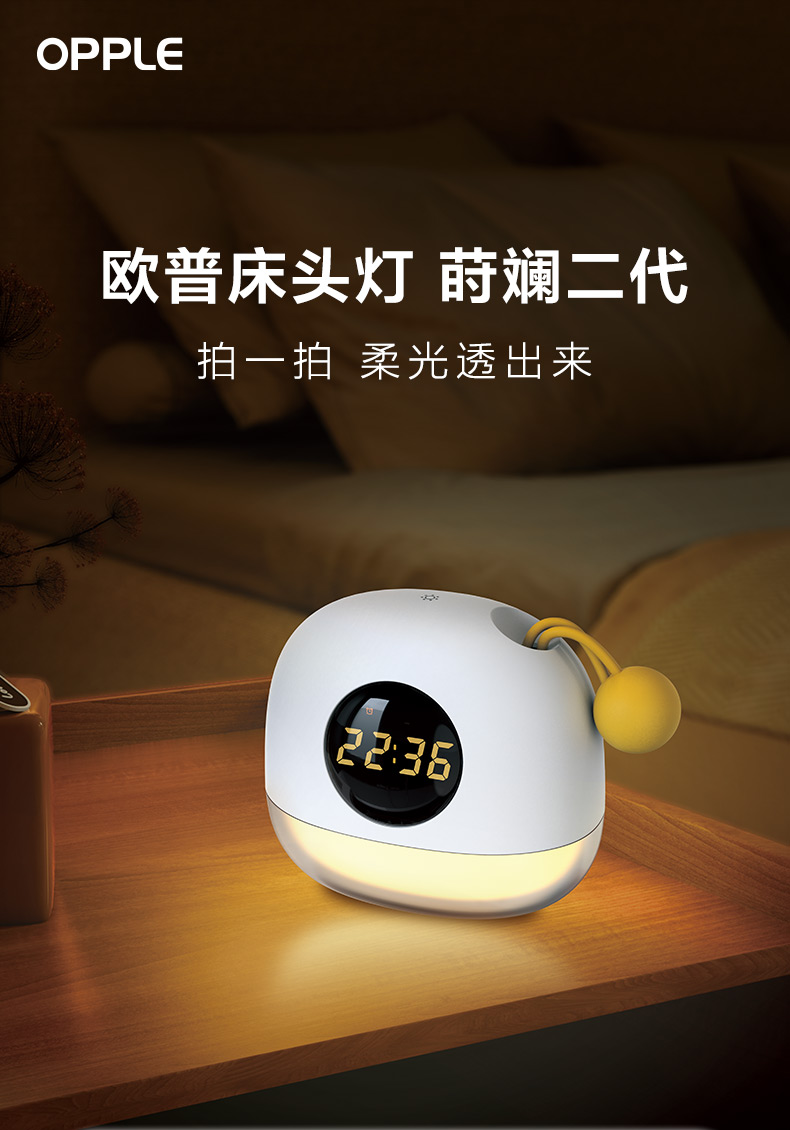 欧普(OPPLE)莳斓·充电小夜灯婴儿喂奶护眼柔光卧室睡眠床头灯带时钟闹钟