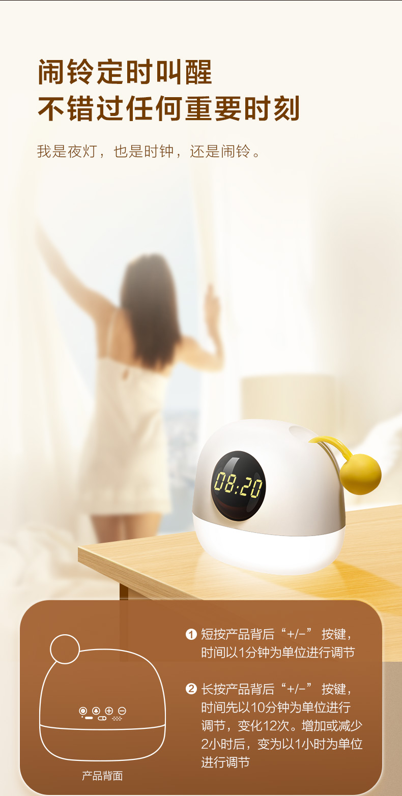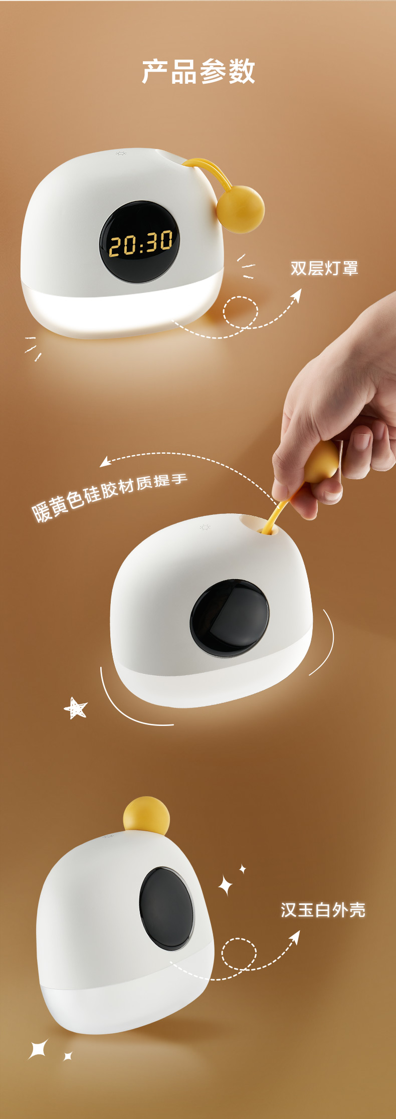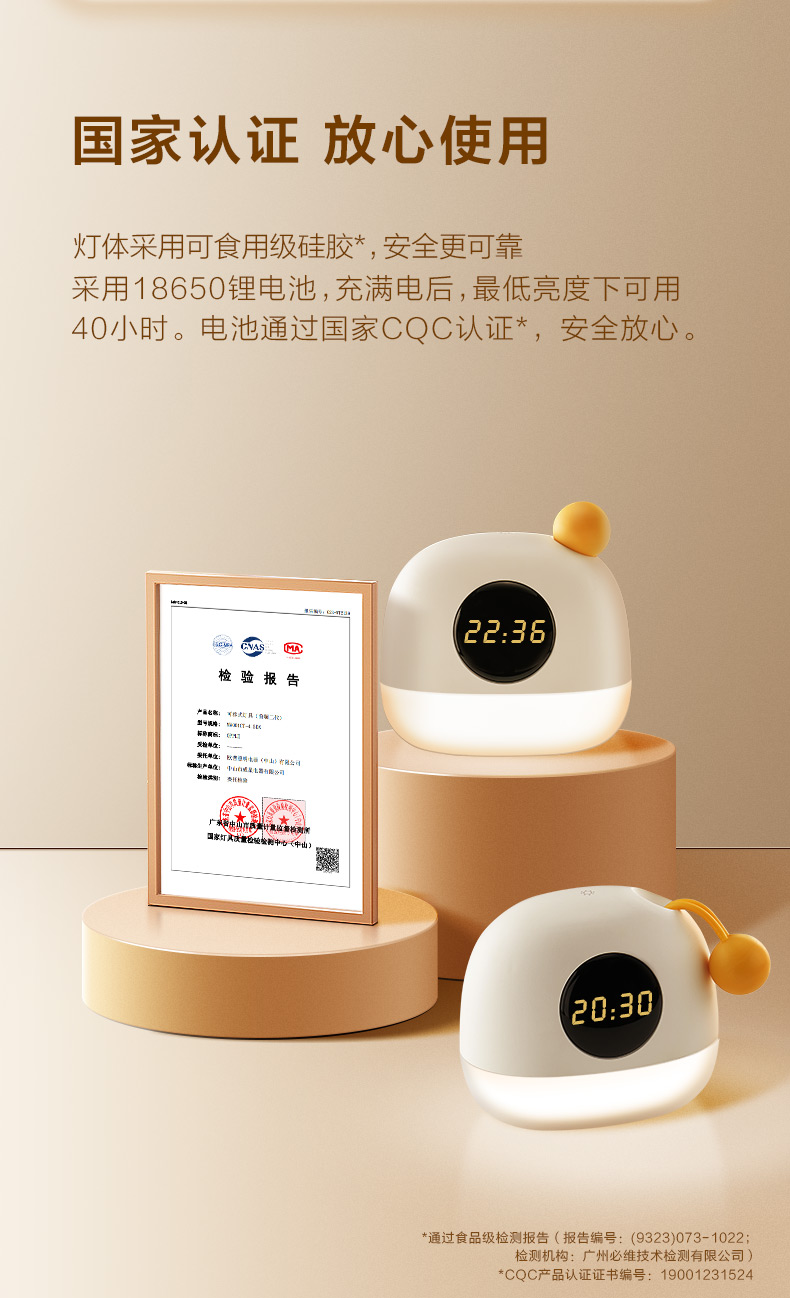欧普(OPPLE)莳斓·充电小夜灯婴儿喂奶护眼柔光卧室睡眠床头灯带时钟闹钟