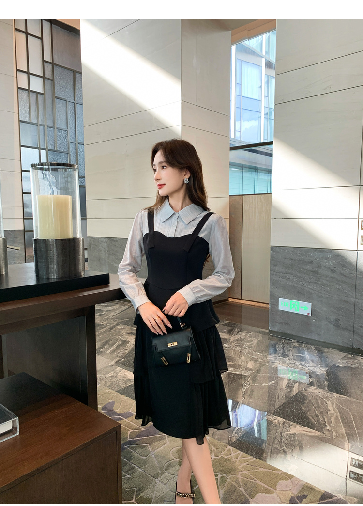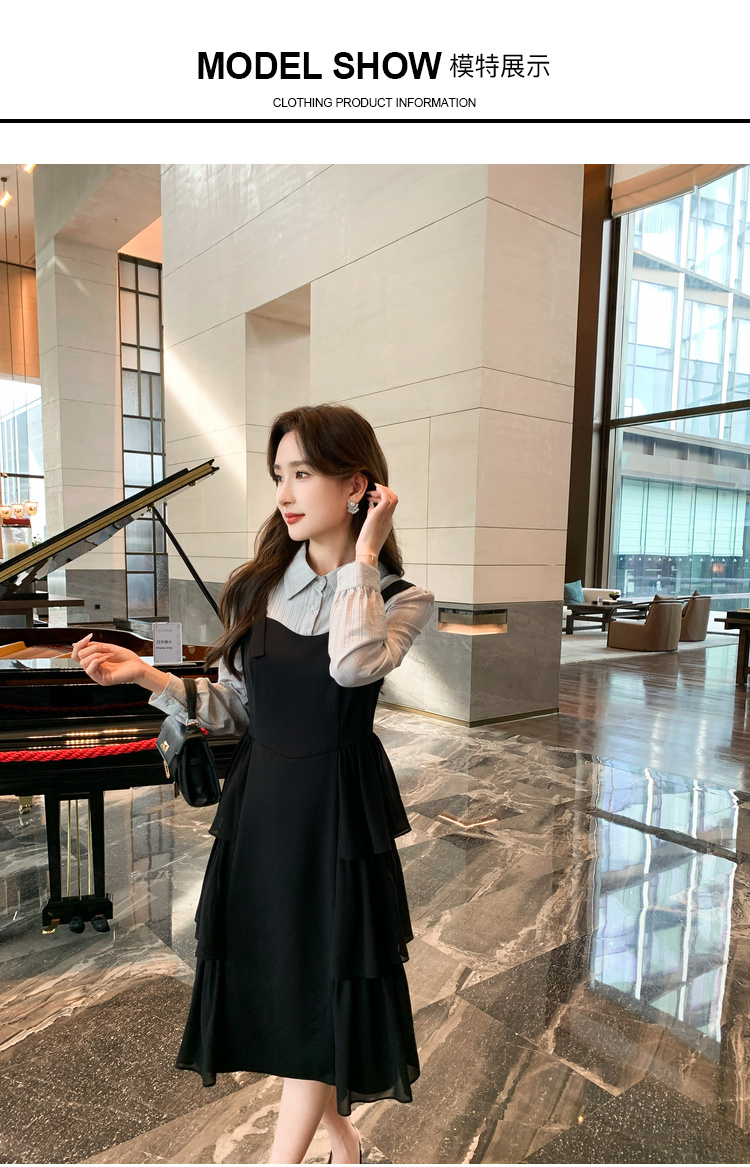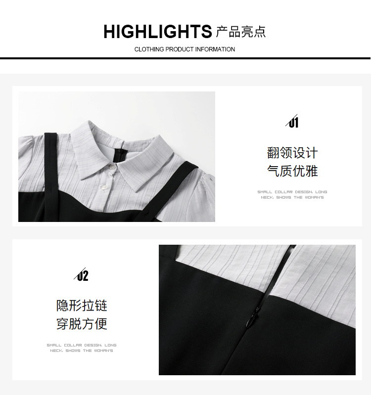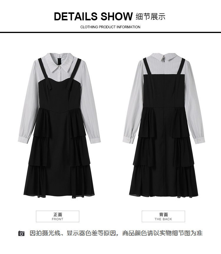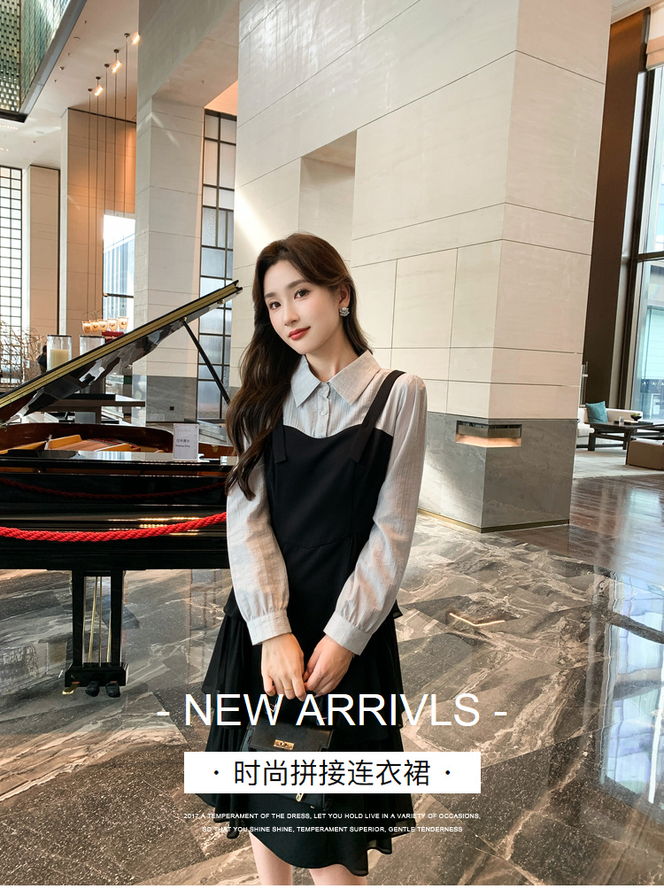 奢姿大码女装2024秋季气质翻领裙子胖妹妹假两件拼接时尚连衣裙9943826658