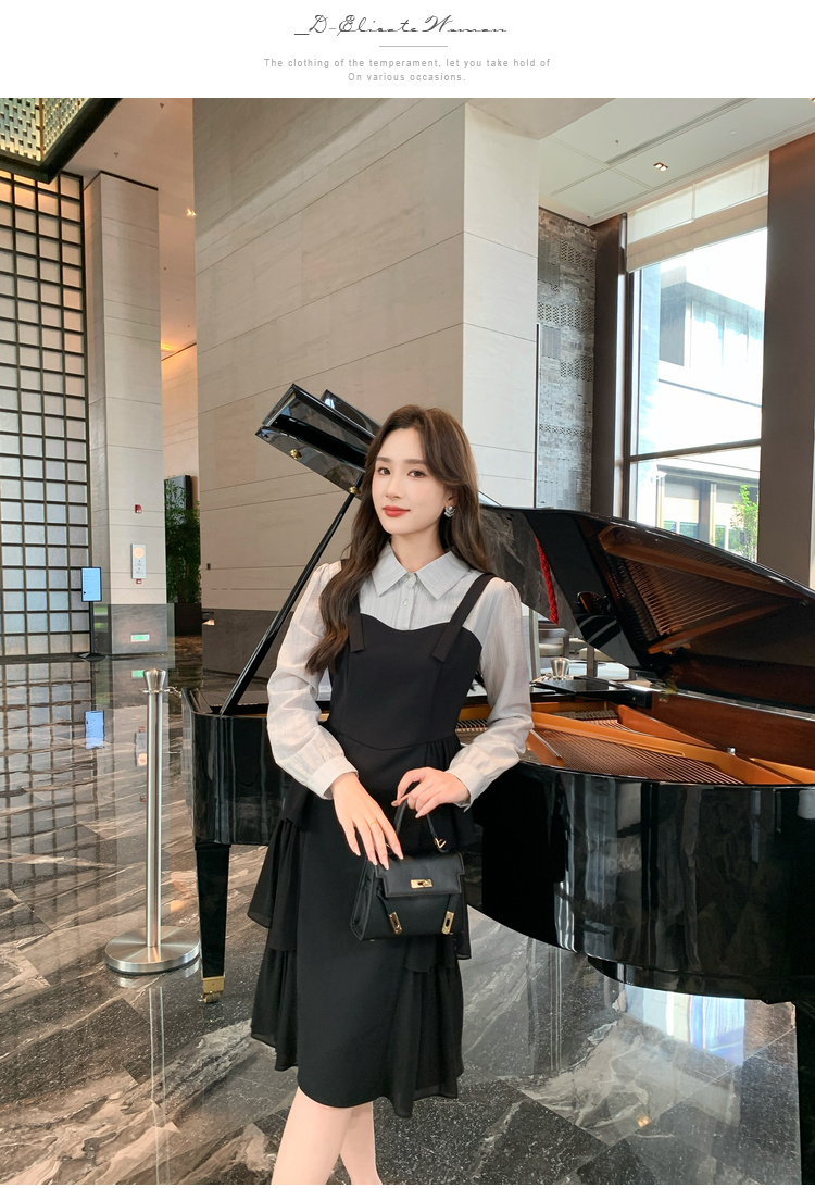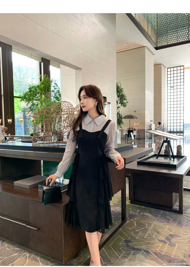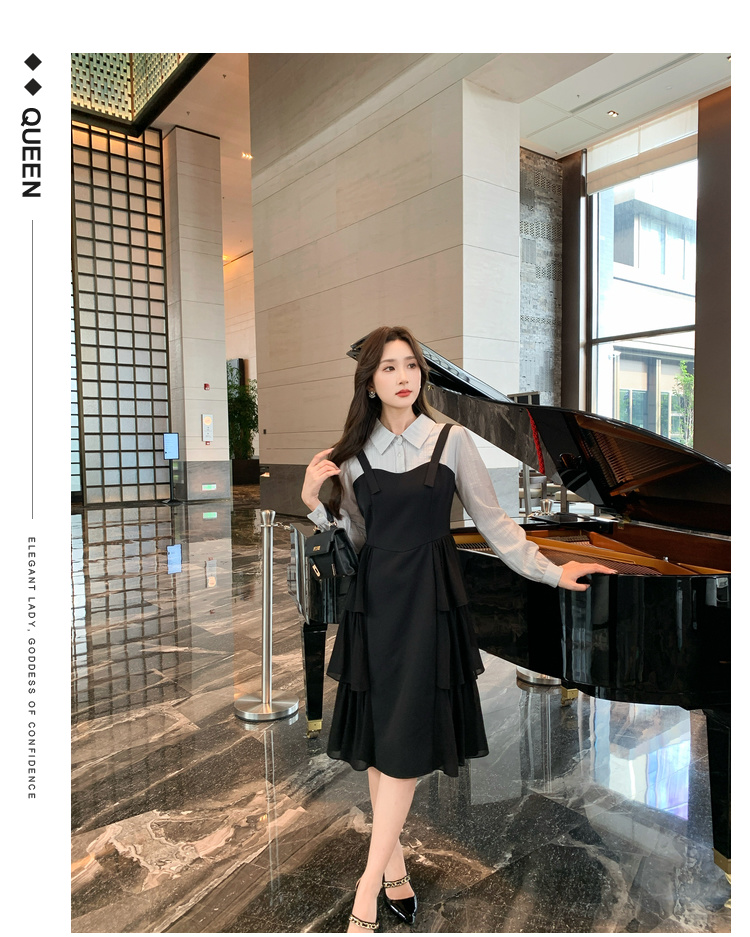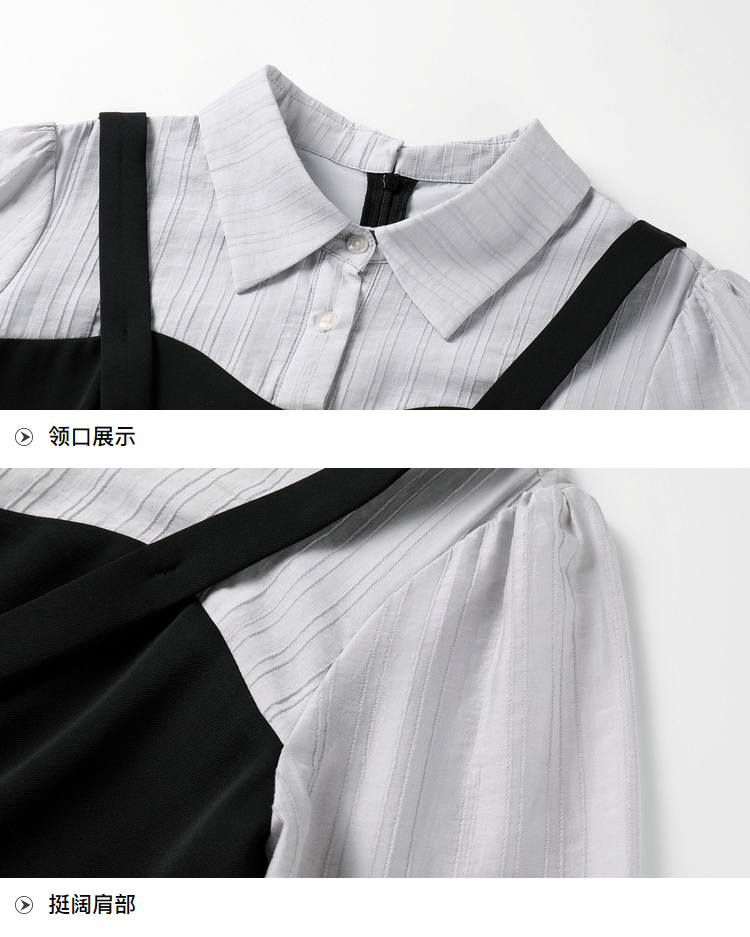 奢姿大码女装2024秋季气质翻领裙子胖妹妹假两件拼接时尚连衣裙9943826658