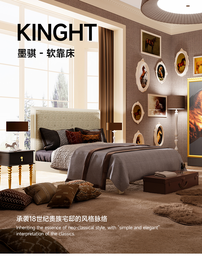 喜梦宝墨骐高定实木软靠床新古典骑士风青少年贵族卧室家具双人床