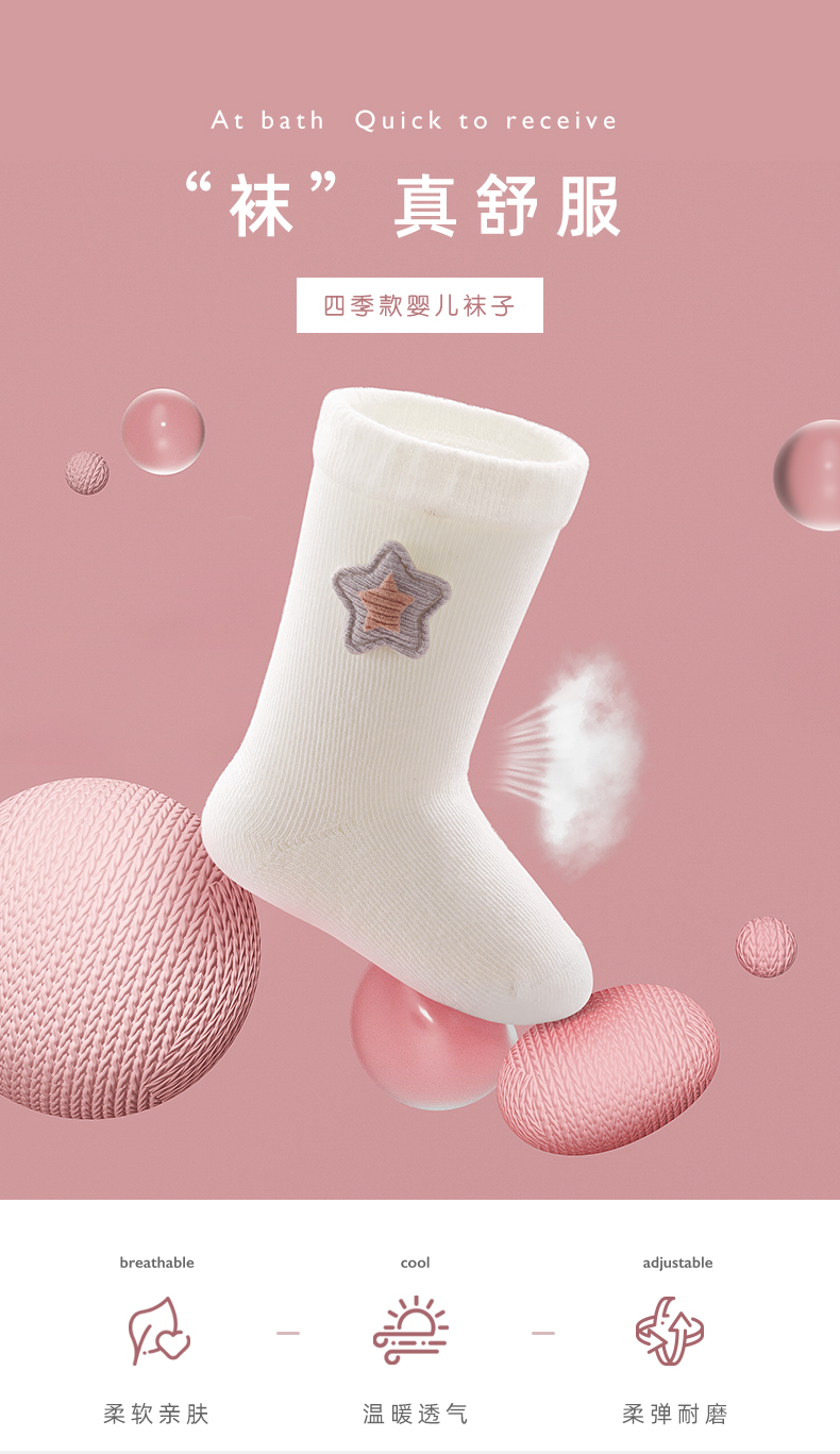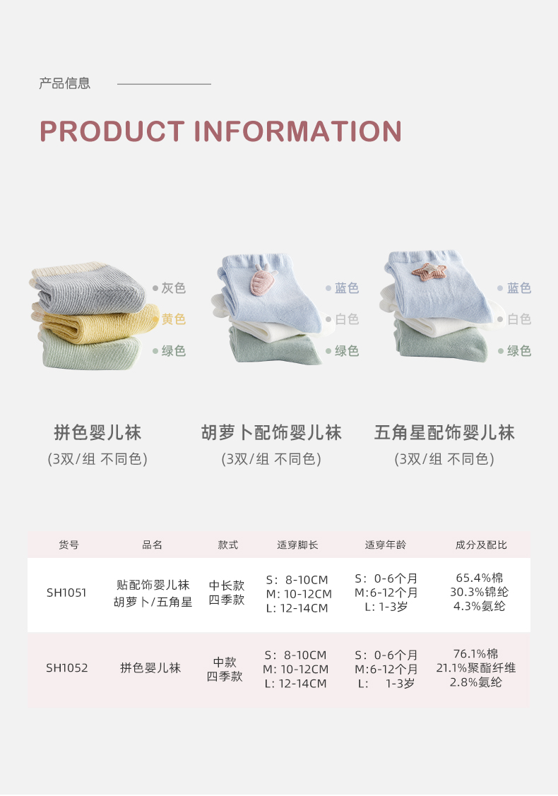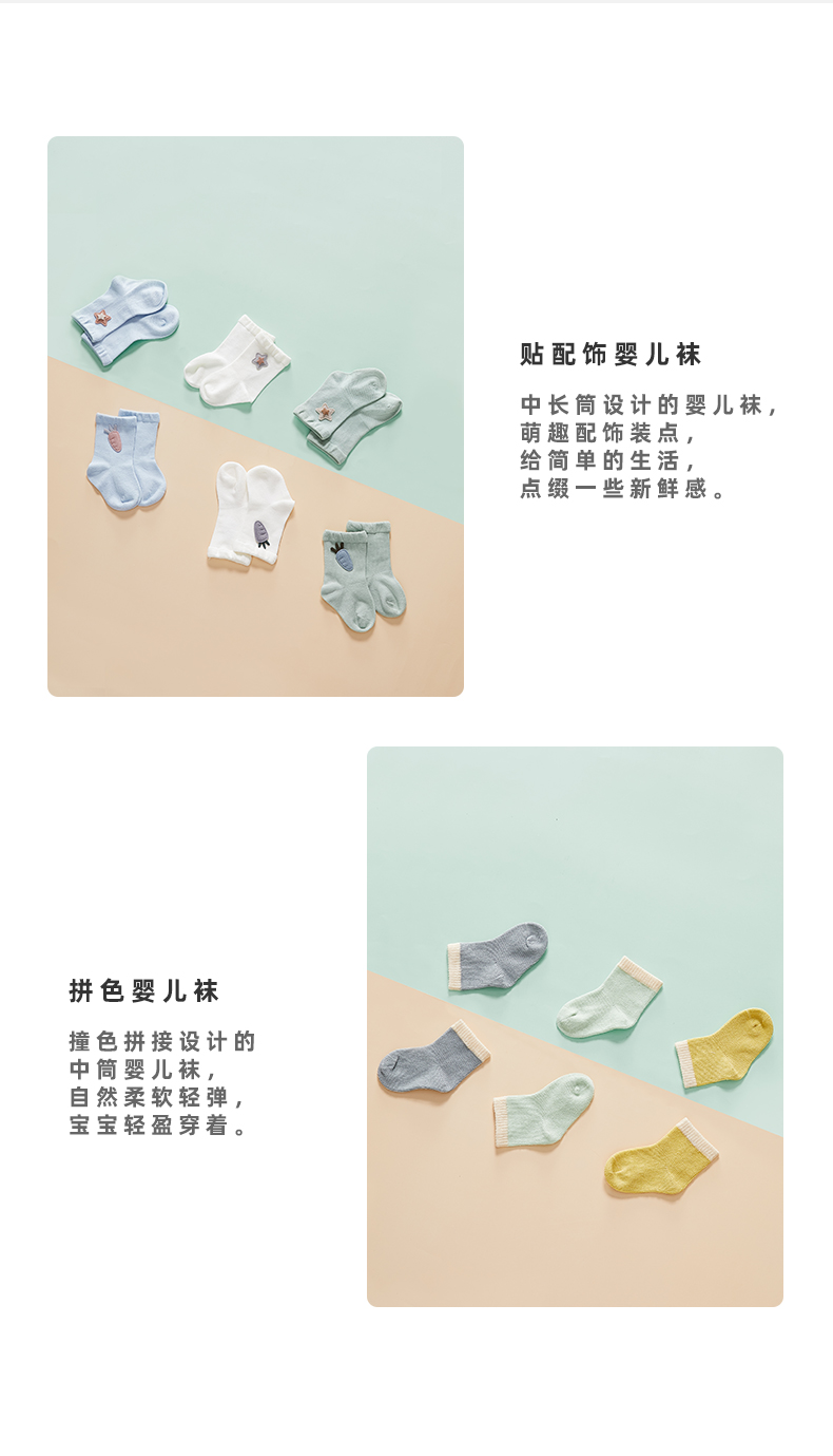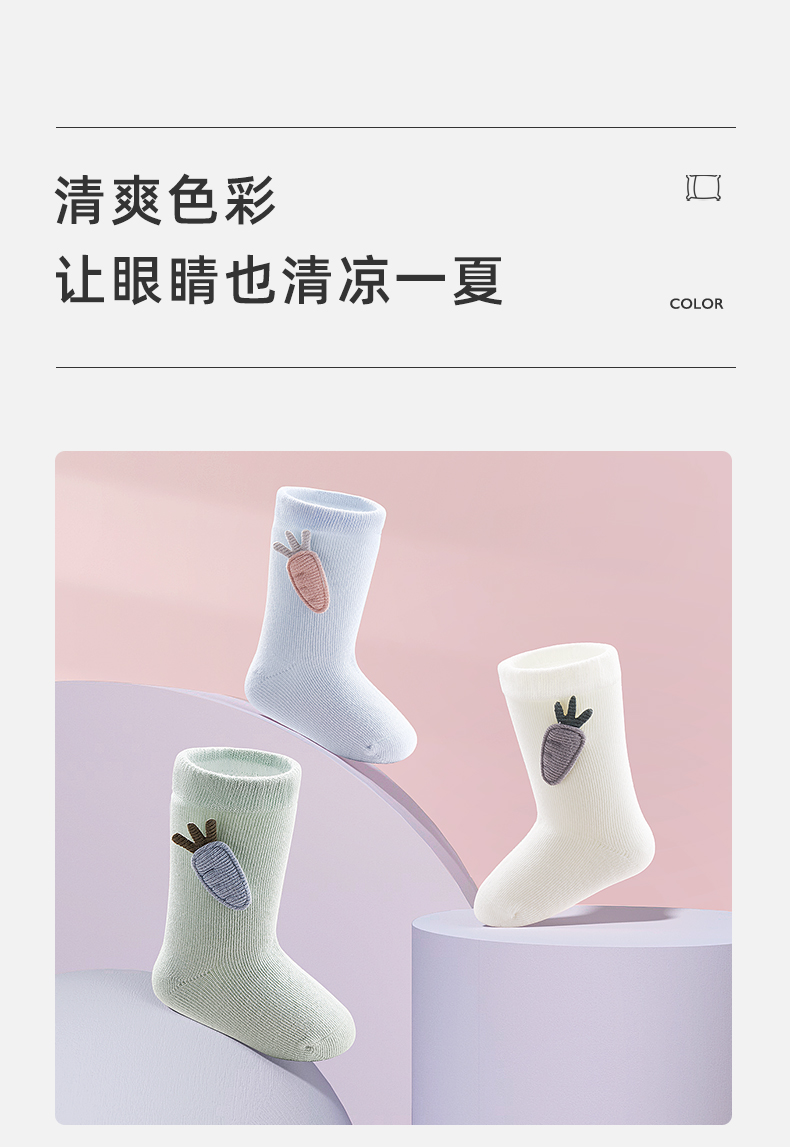 【任选两件,买一送一】婴儿春秋透气宝宝可爱中筒袜3双