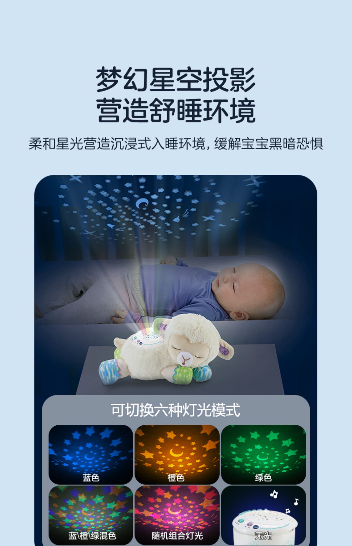伟易达 声光安抚小绵羊睡眠仪宝宝安抚玩偶哄睡神器可拆卸婴儿抱睡玩具 0月+