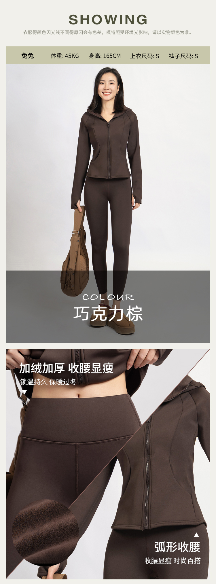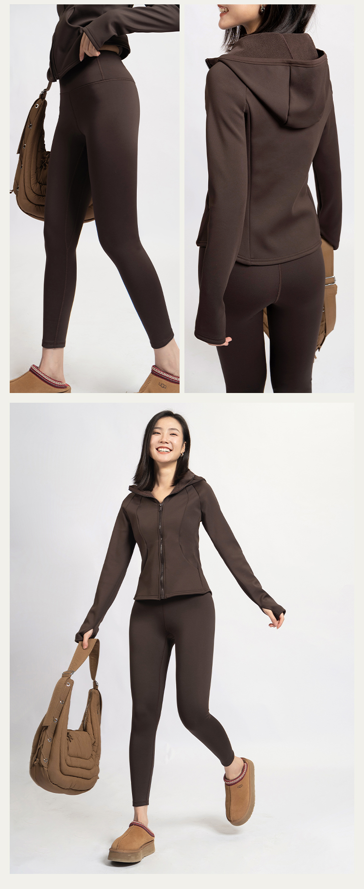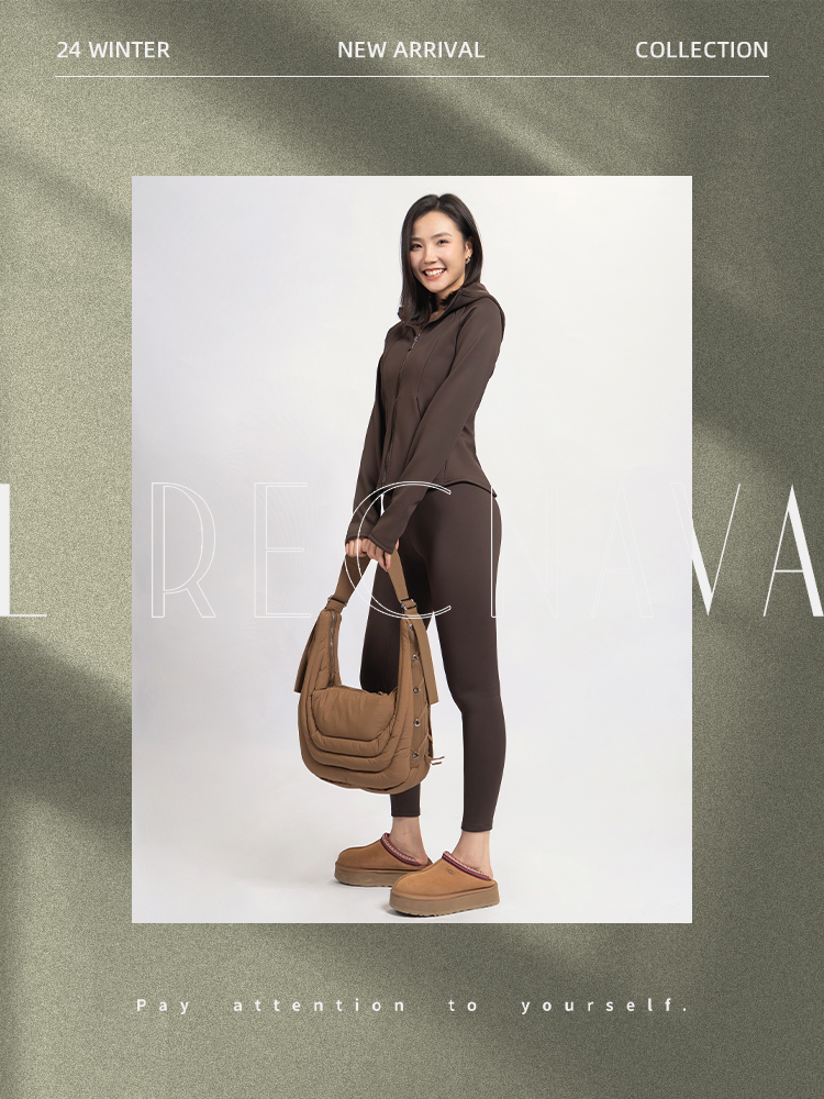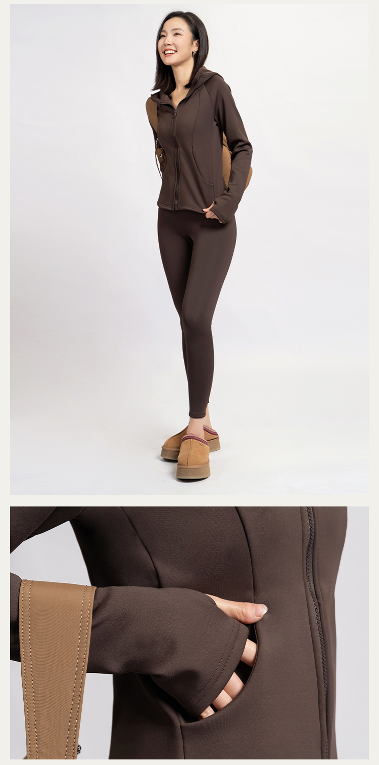 L RECNAVA [亲肤加厚绒] 超厚加绒修身保暖运动套装—拉链连帽外套修身显瘦—九分裤高腰收腹提臀