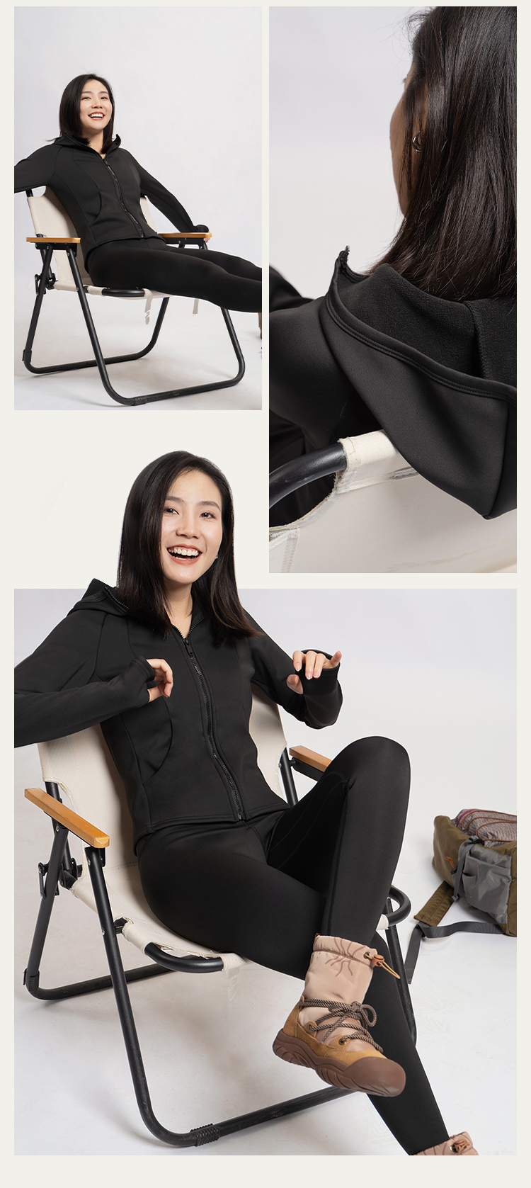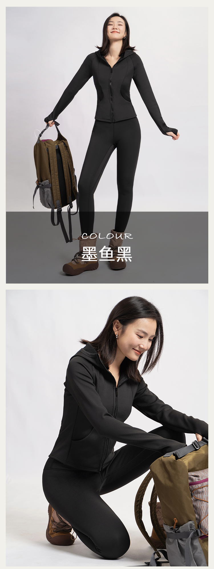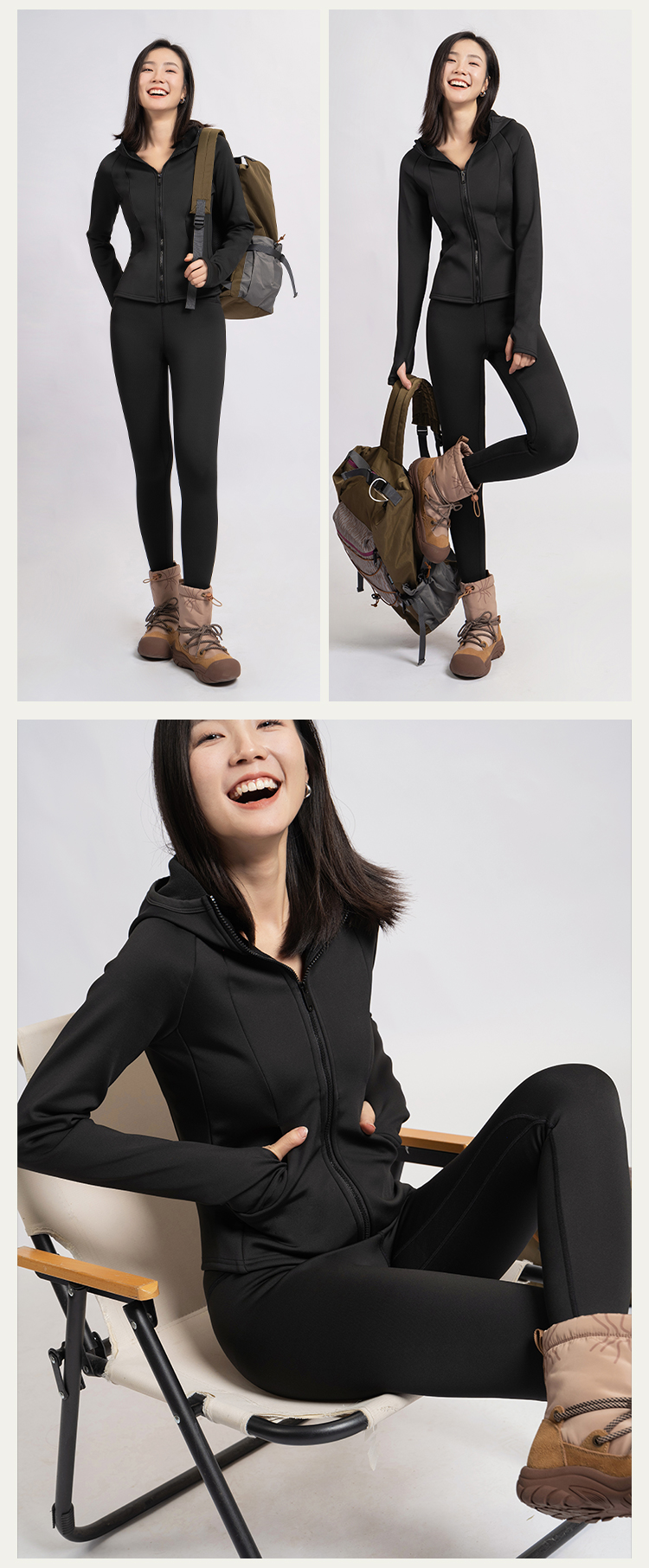 L RECNAVA [亲肤加厚绒] 超厚加绒修身保暖运动套装—拉链连帽外套修身显瘦—九分裤高腰收腹提臀