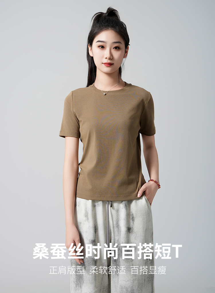 I'd爱帝桑蚕丝时尚百搭短袖T恤夏季薄款休闲衫