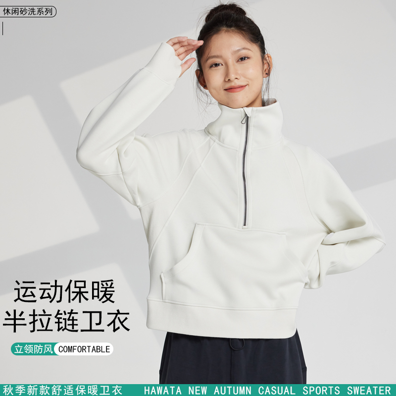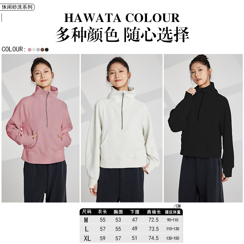 哈瓦塔 (砂洗)半拉链时尚宽松外套 H340133