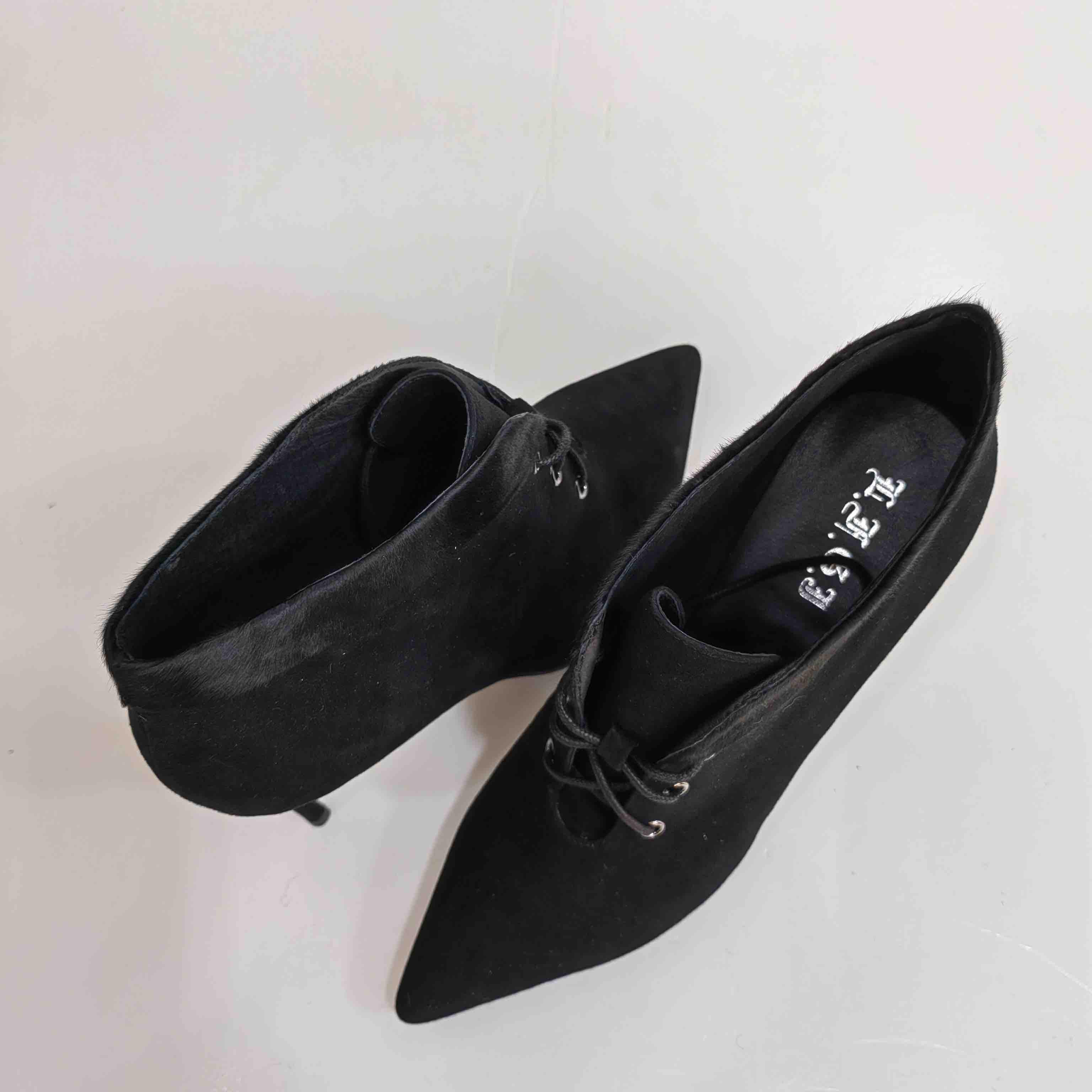 LFGJ 6603 真皮尖头细跟高跟短靴磨砂皮裸靴潮