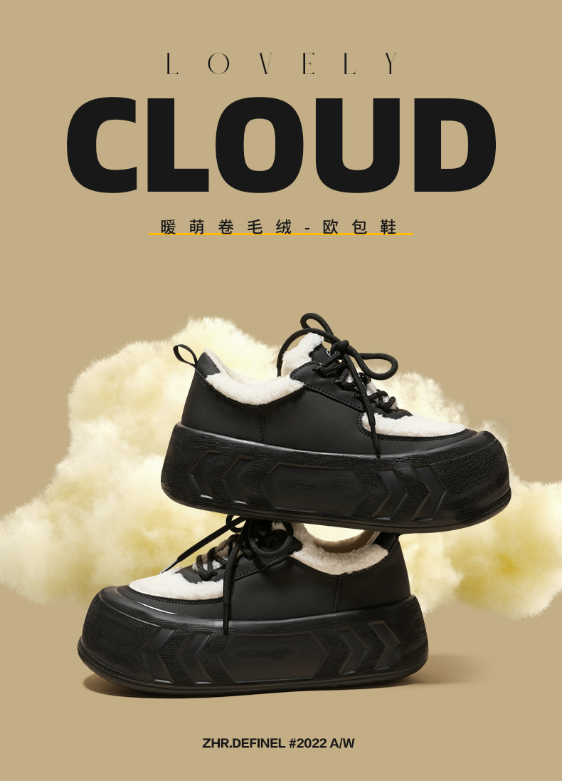 ZHR老爹鞋女2022秋冬新款加绒高帮厚底爆款加厚运动休闲棉鞋