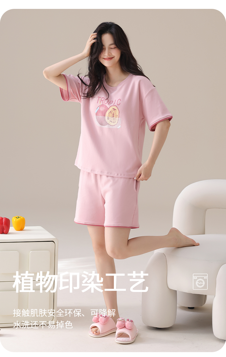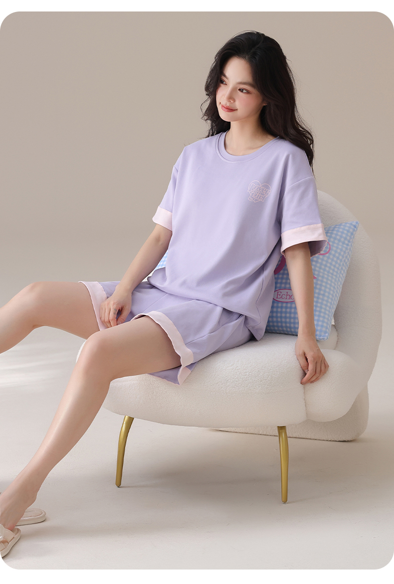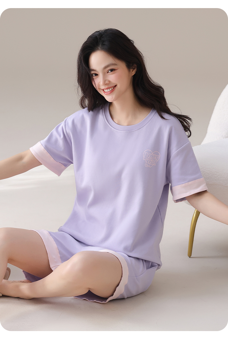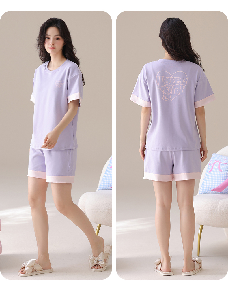 I‘d爱帝女士夏季透气纯棉短袖家居套装