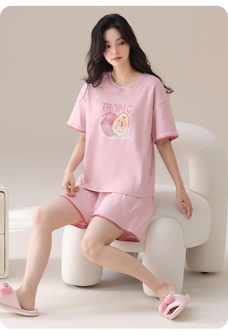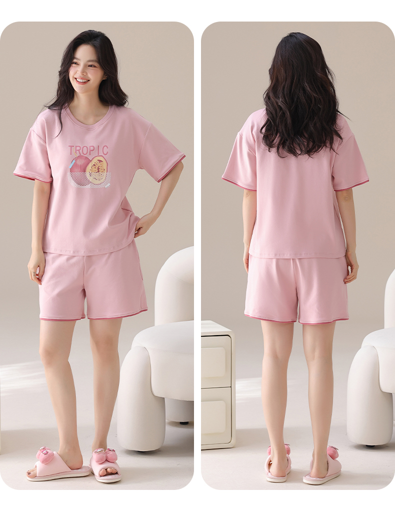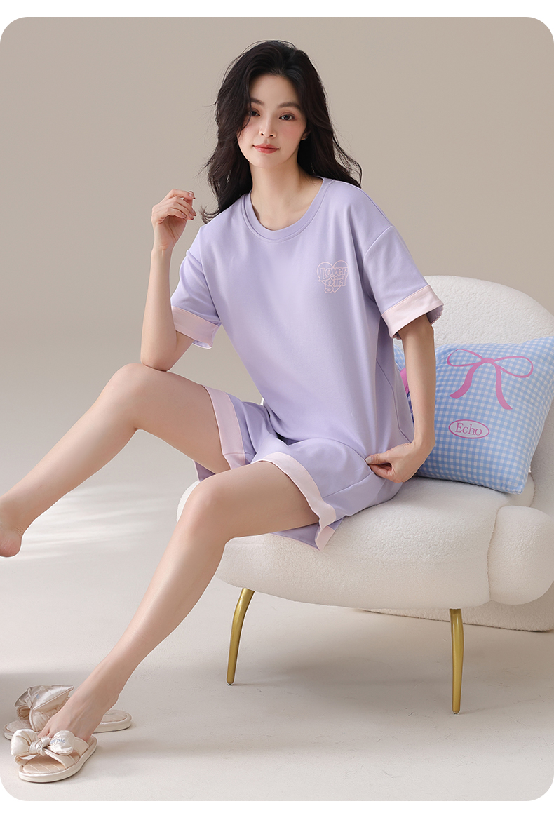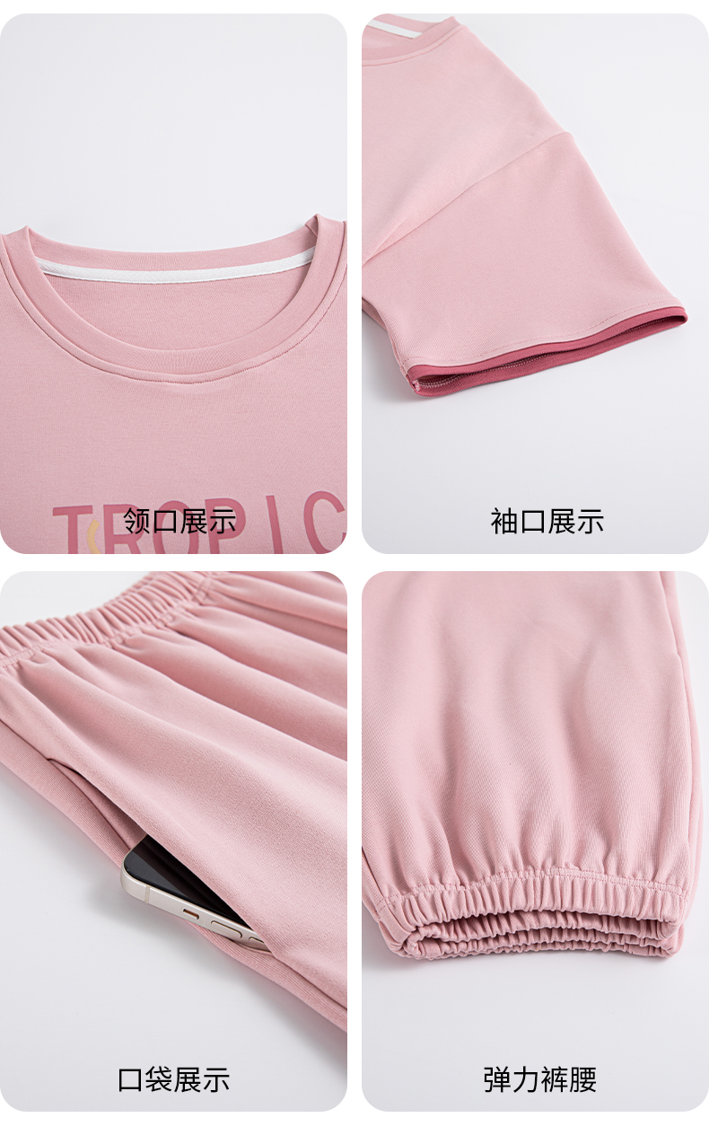 I‘d爱帝女士夏季透气纯棉短袖家居套装