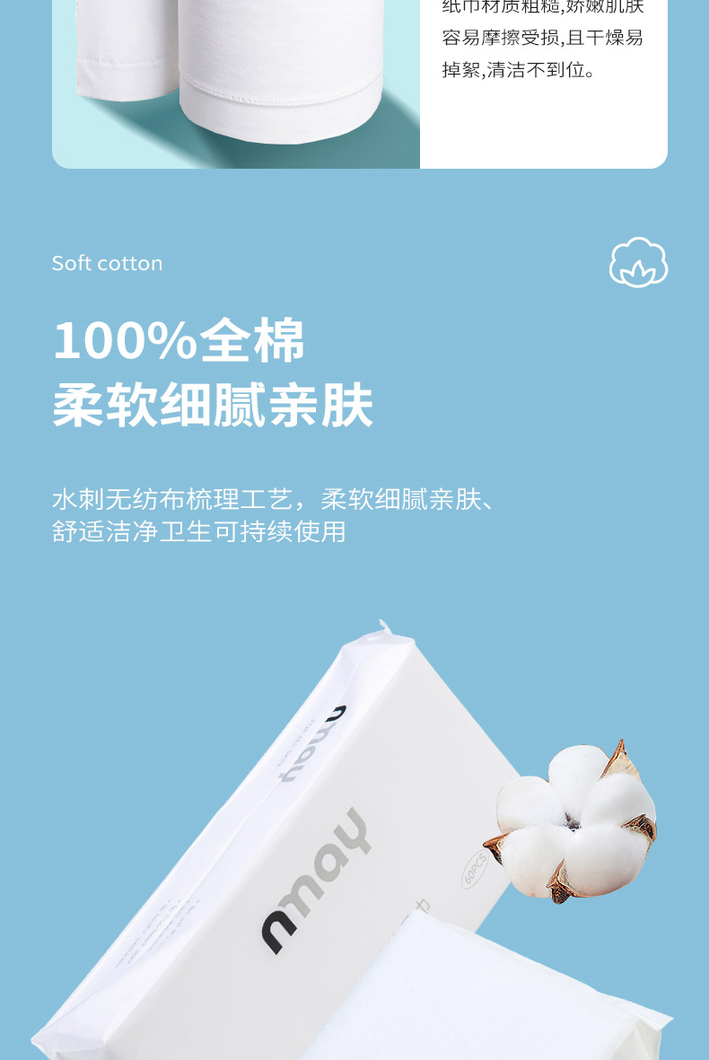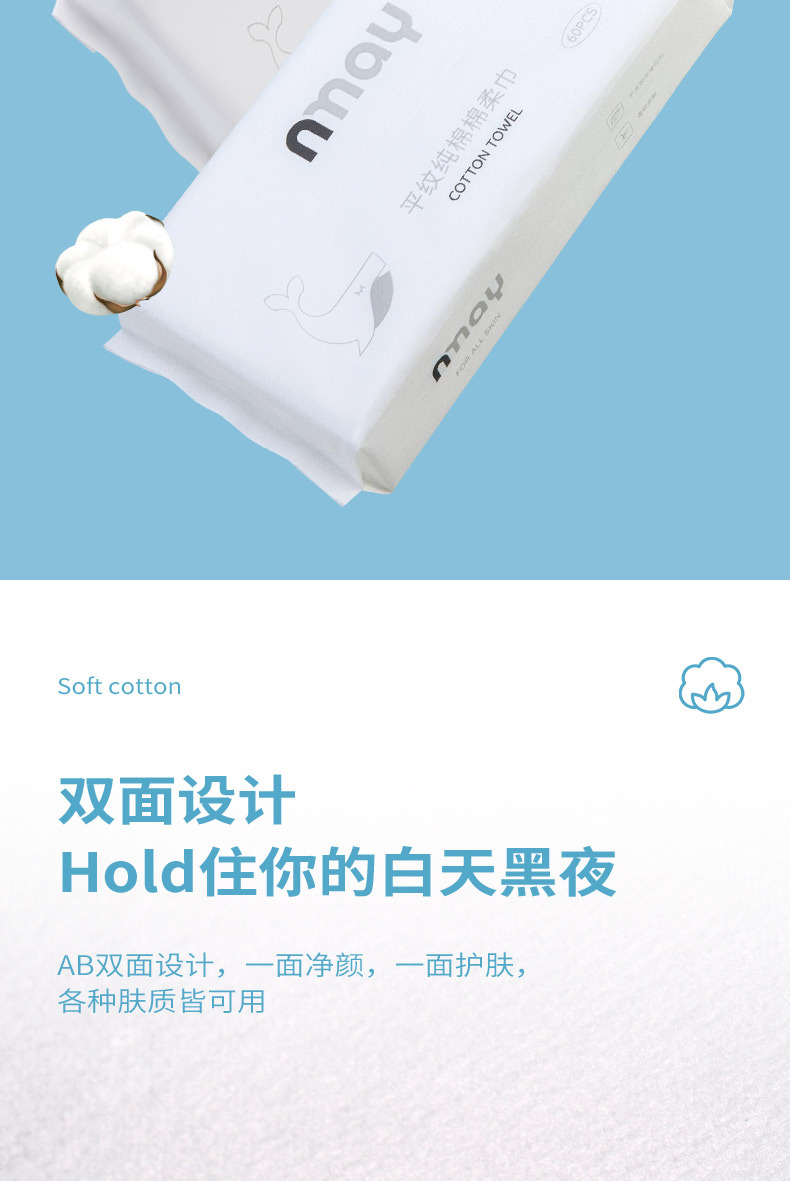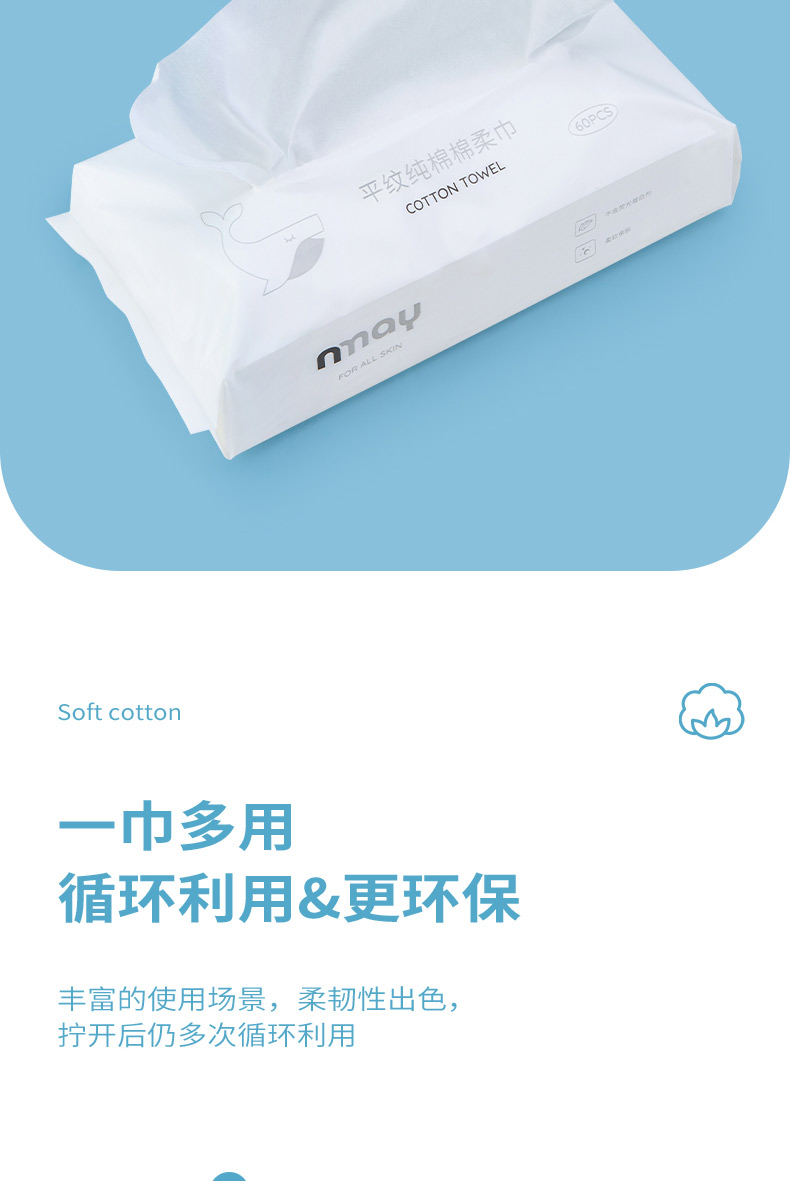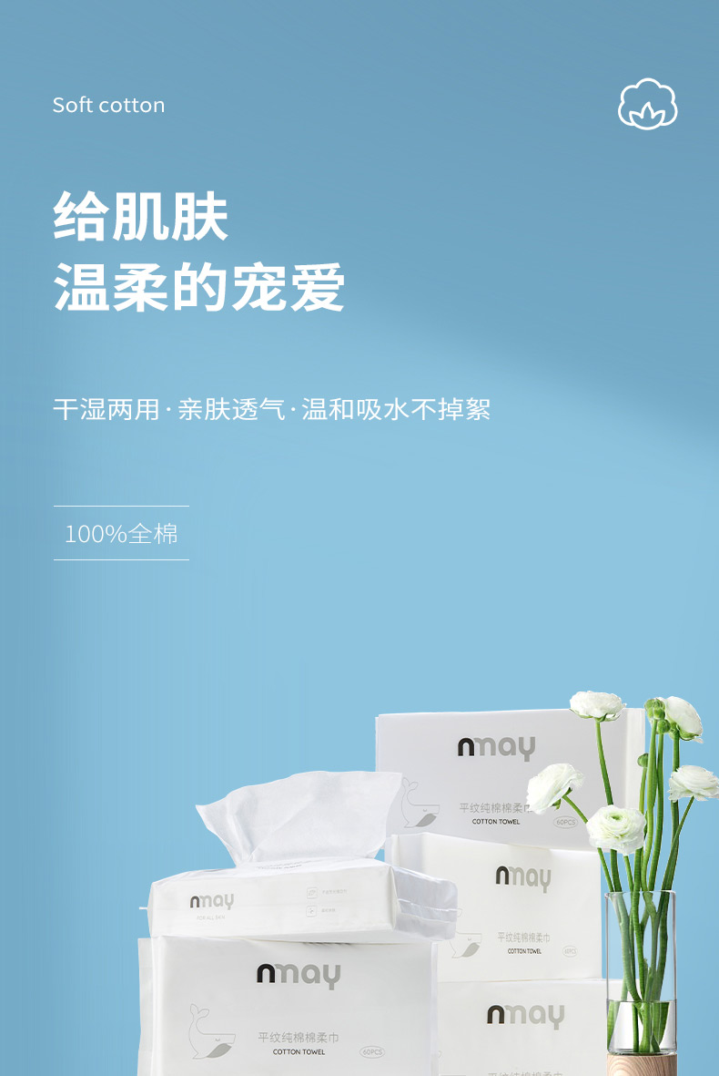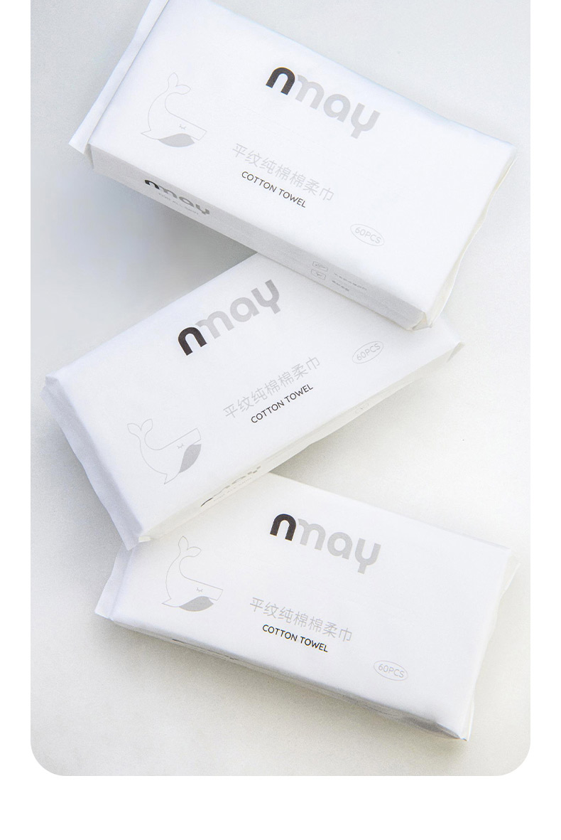 德国 nmay 平纹纯棉棉柔巾洗脸巾干湿两用亲肤透气 60P/包