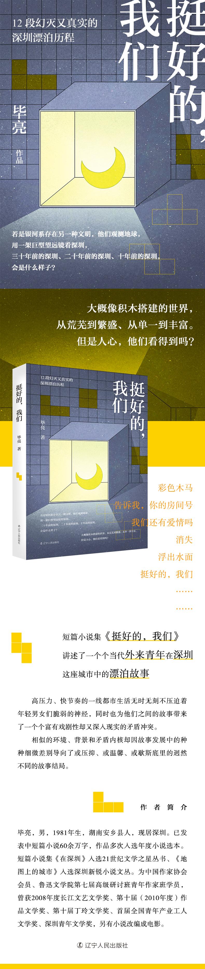 短篇小说集《挺好的,我们》讲述了一个个当代外来青年在深圳这座城市中的漂泊故事。高压力、快节奏的一线都市生活无时无刻不压迫着年轻男女们脆弱的神经,同时也为他们之间的故事带来了一个个富有戏剧性却又深入现实的矛盾冲突。相似的环境、背景和矛盾内核却因故事发展中的种种细微差别导向了或压抑、或温馨、或歇斯底里的迥然不同的故事结局。