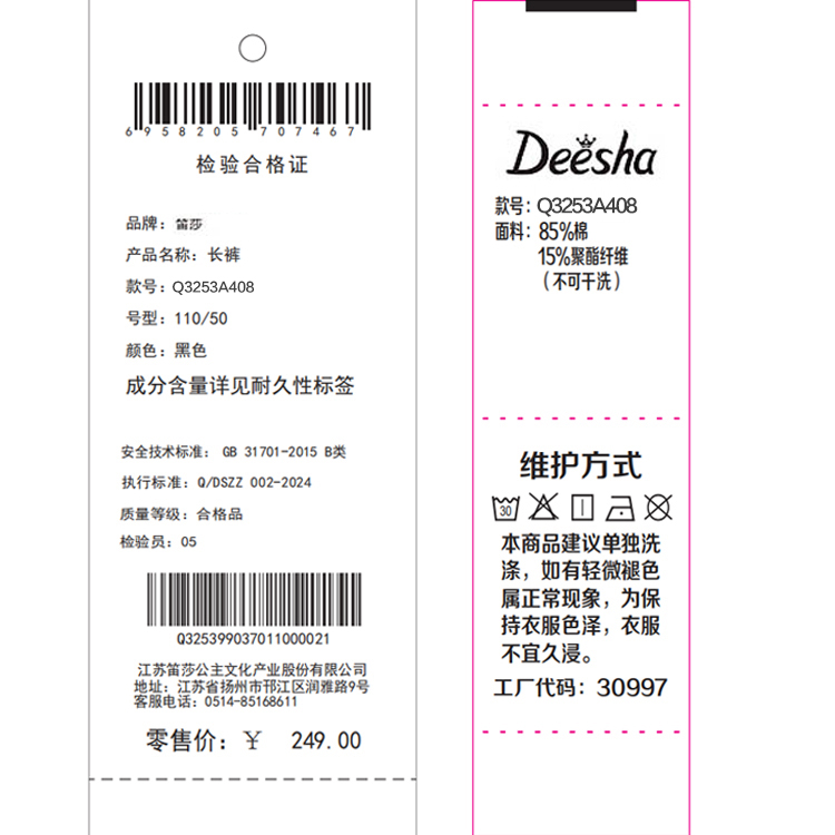 笛莎Deesha 2025秋季新款女童甜美时尚设计感直筒长裤