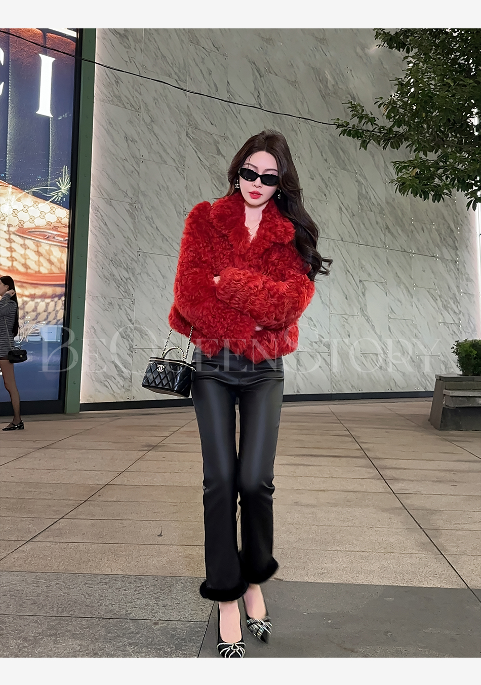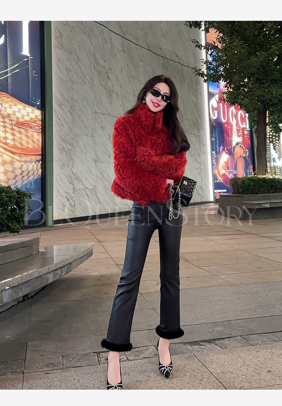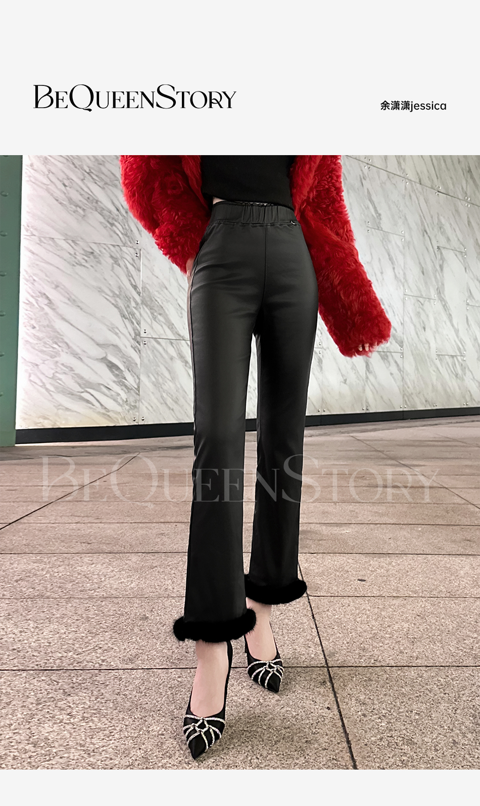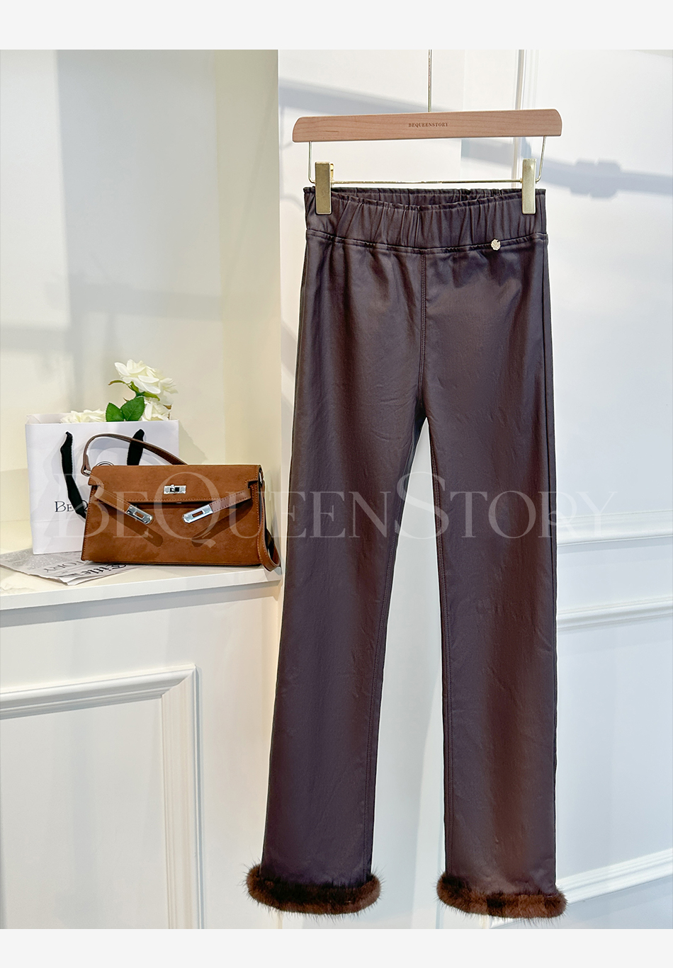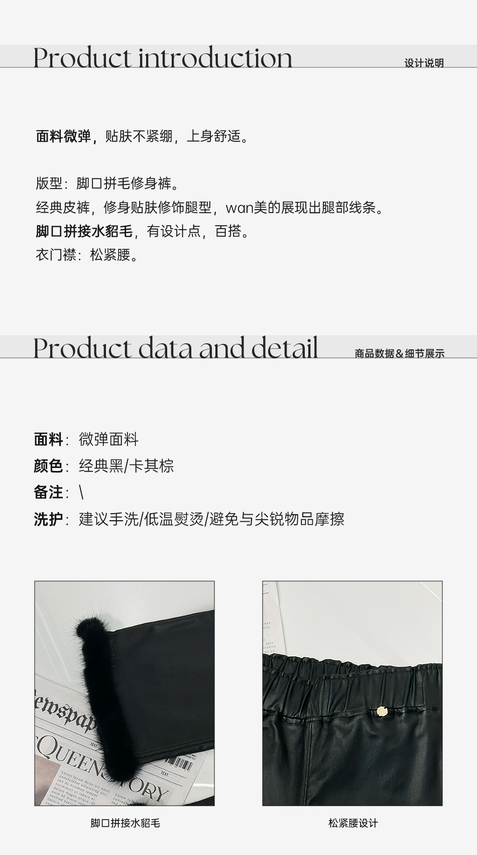 【孤品样衣,不退不换】【英伦腔调】气质百搭微弹脚口拼接水貂毛加绒休闲裤
