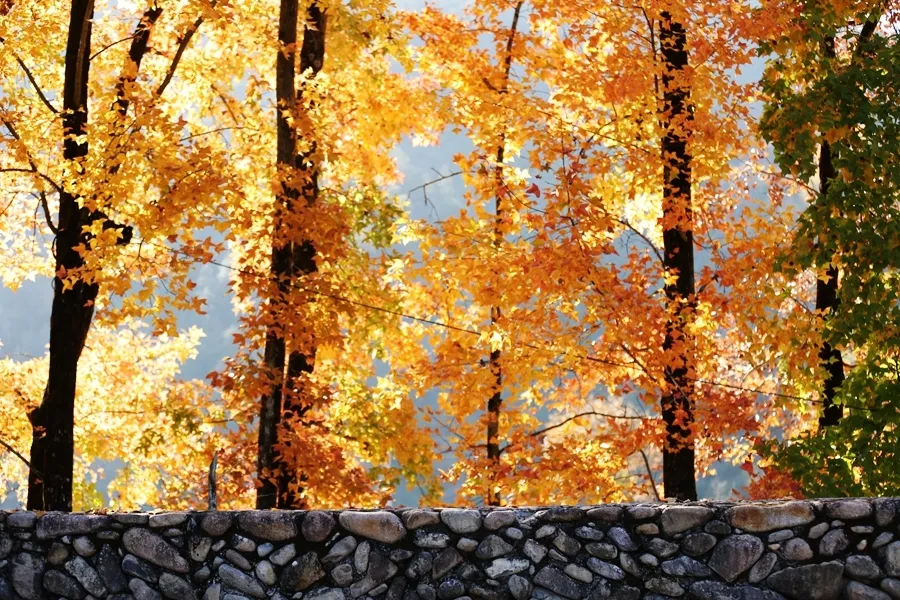 这里“水秀、岩奇、瀑多、村古、滩林美”的独有特色而闻名遐迩。时下的楠溪江,因秋色而增辉,无论是与古树古村的相映,还是倒映在楠溪江碧水里,秋色正以它最灿烂的姿态为冬天的楠溪江再添一抹色彩。
