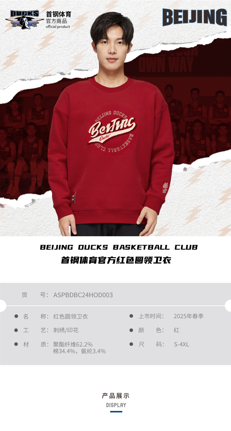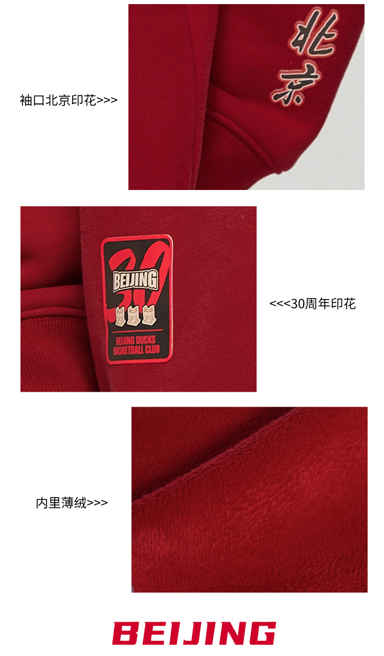 【官方正版】北京首钢篮球俱乐部 | 新年红加绒卫衣球迷套头衫