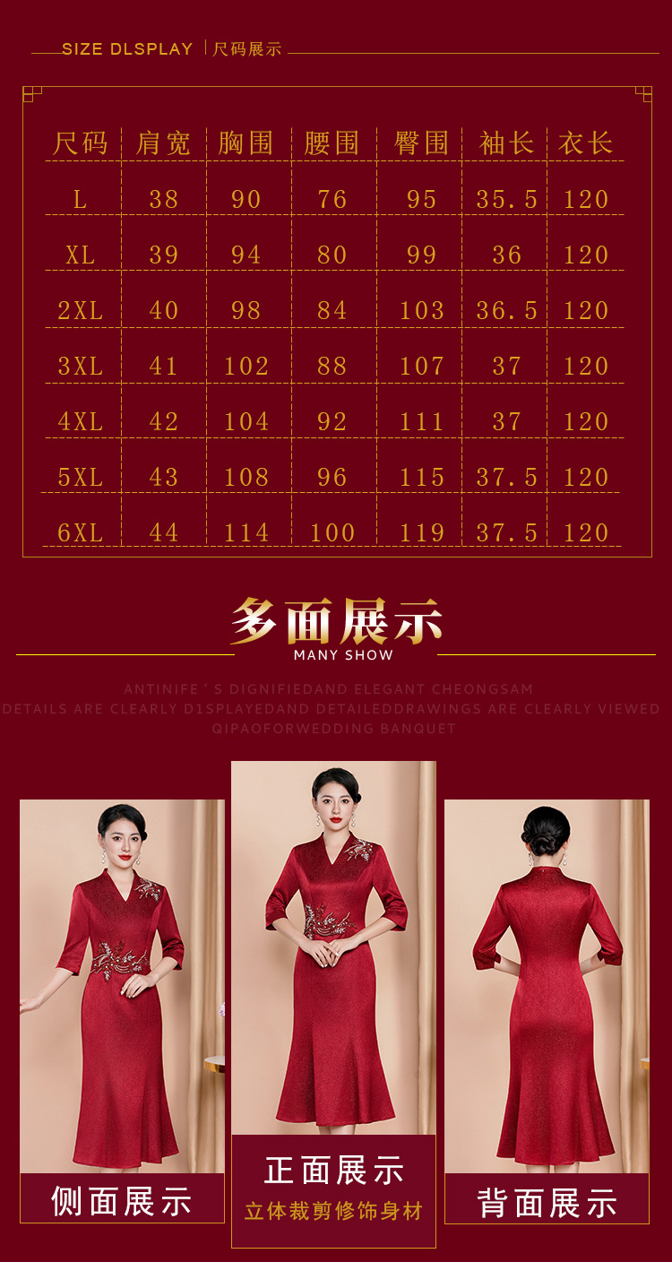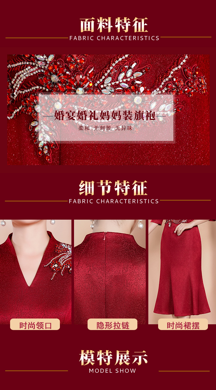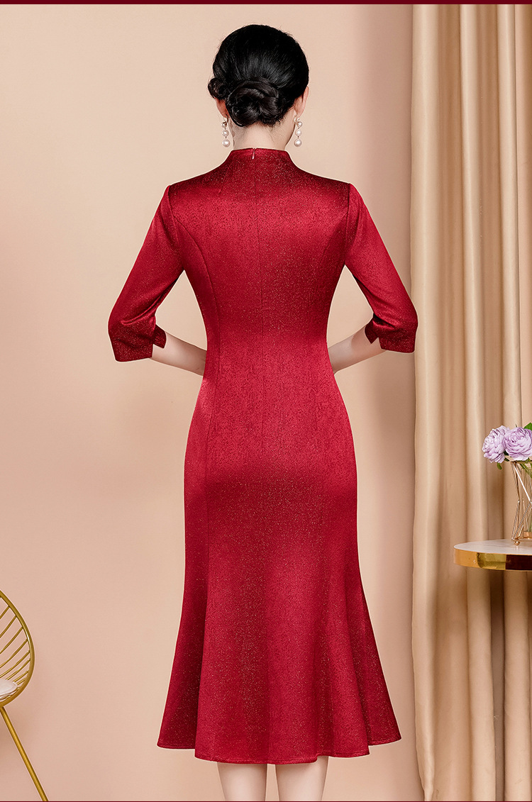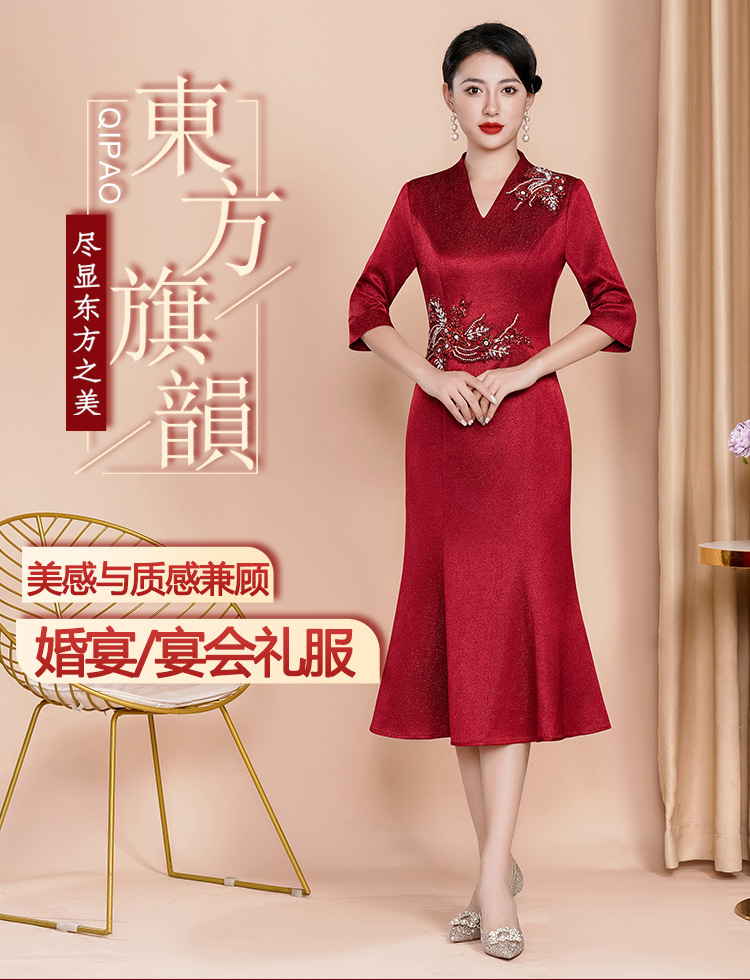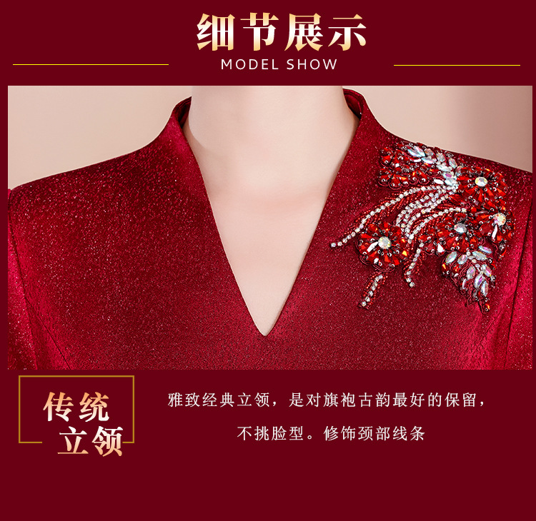 改良版年轻款复古红色旗袍礼服高端连衣裙WX-88339