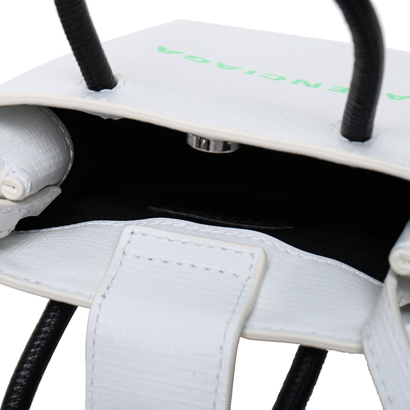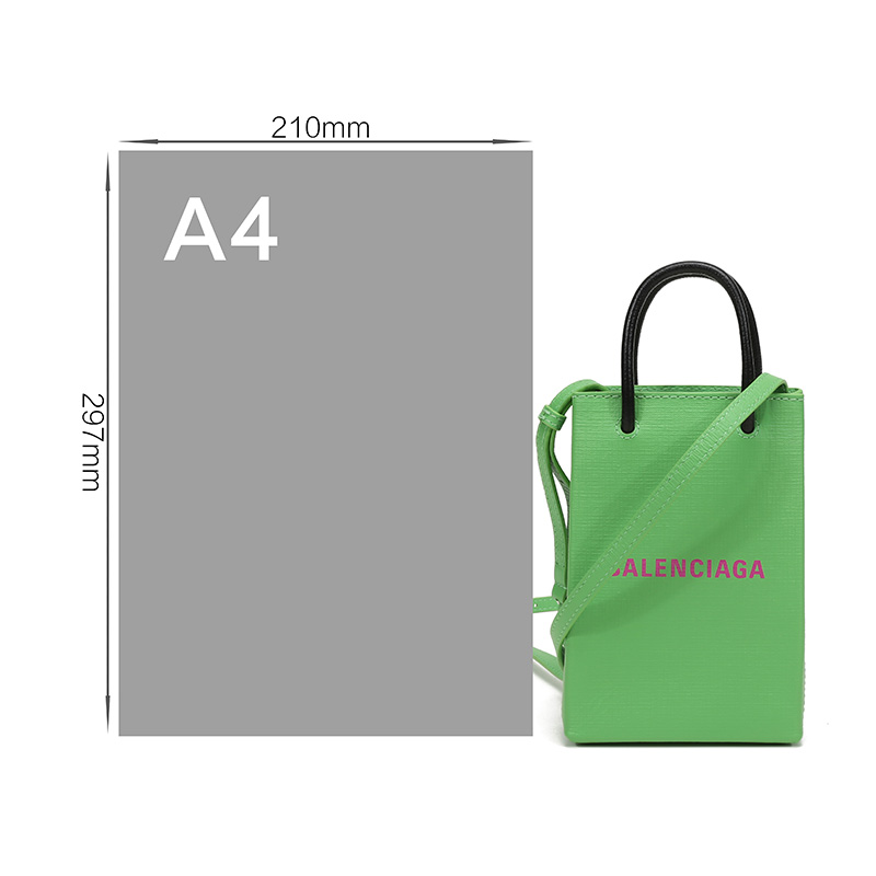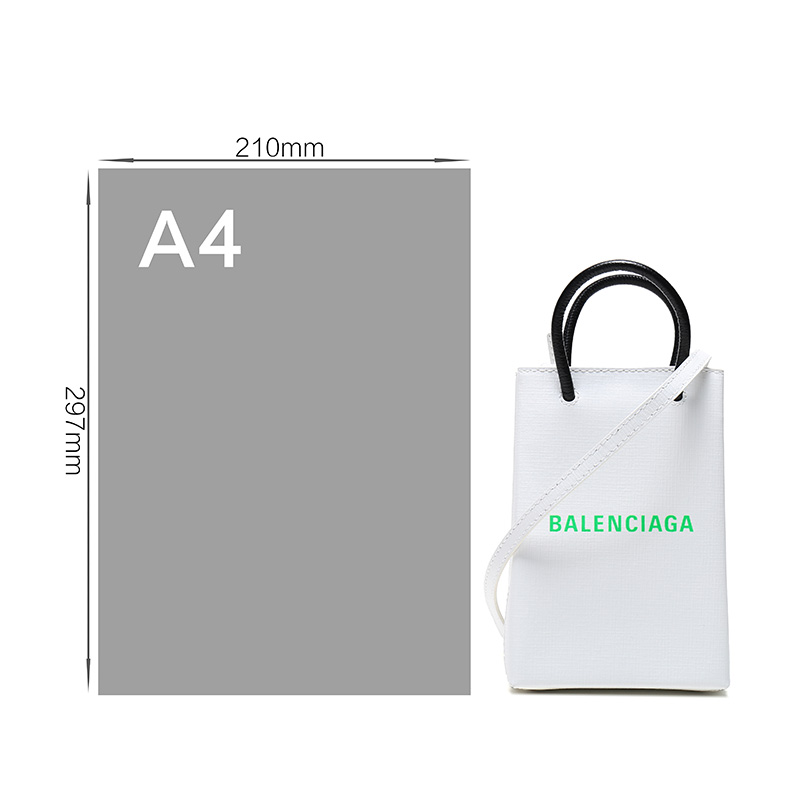 ![]() | 品牌:Balenciaga/巴黎世家 产地:意大利等国(批次不同,产地不同) 款式:女士 颜色:白色绿色LOGO图案 材质:皮革 结构:开放式包口,吸扣开合,内置1个贴袋 尺寸:宽约12cm,高约18cm,厚约5cm,手提高约6cm,可调节肩带长约120cm,宽约1cm