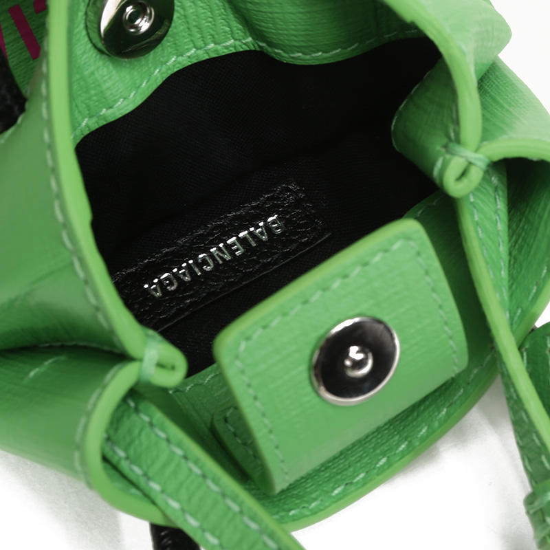 ![]() | 品牌:Balenciaga/巴黎世家 产地:意大利等国(批次不同,产地不同) 款式:女士 颜色:绿色 材质:皮革 结构:开放式包口,吸扣开合,内置1个贴袋 尺寸:宽约12cm,高约18cm,厚约5cm,手提高约6cm,可调节肩带长约120cm,宽约1cm