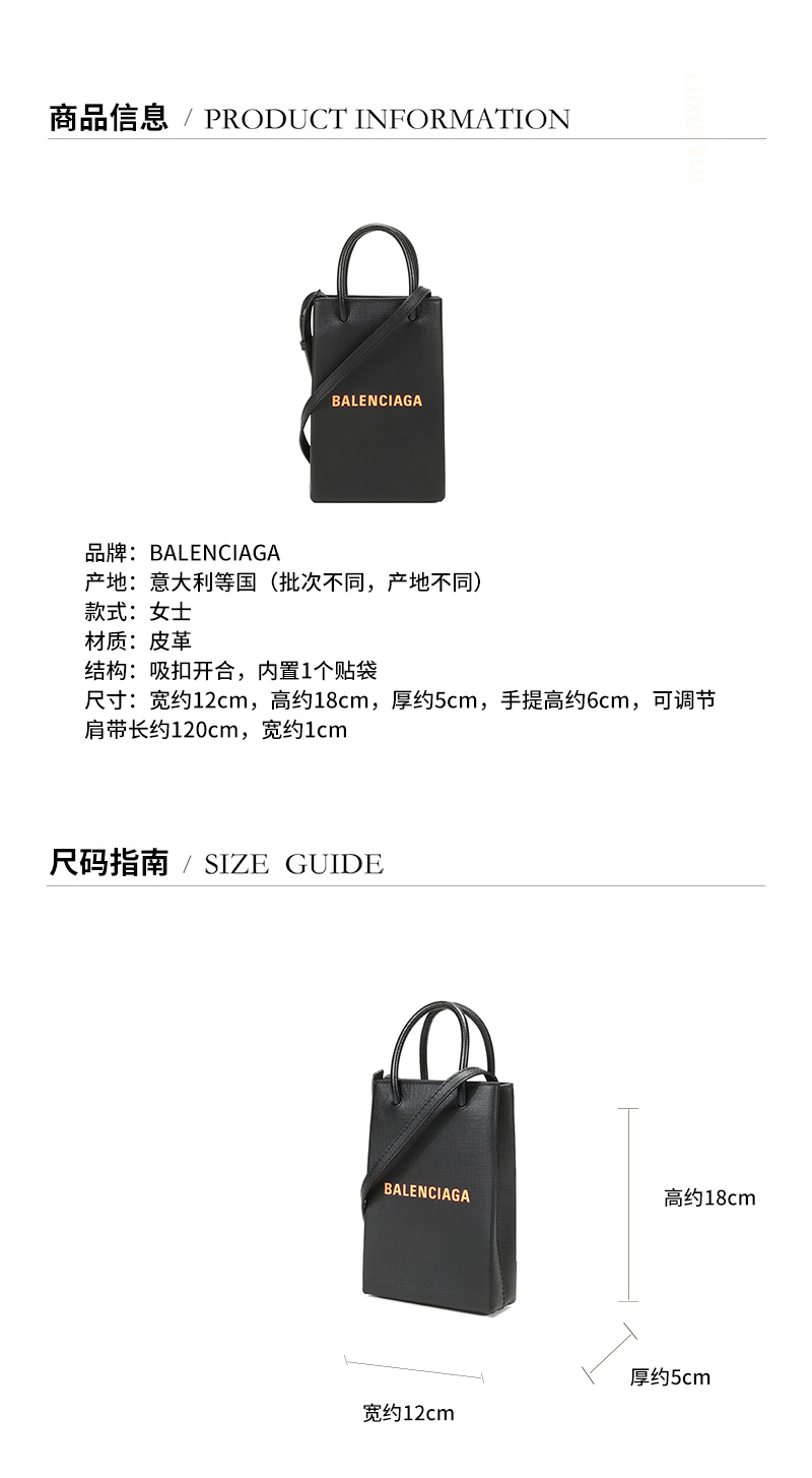 【现货秒发】Balenciaga/巴黎世家 女士皮质手提单肩斜挎包手机包 593826 0AI5N